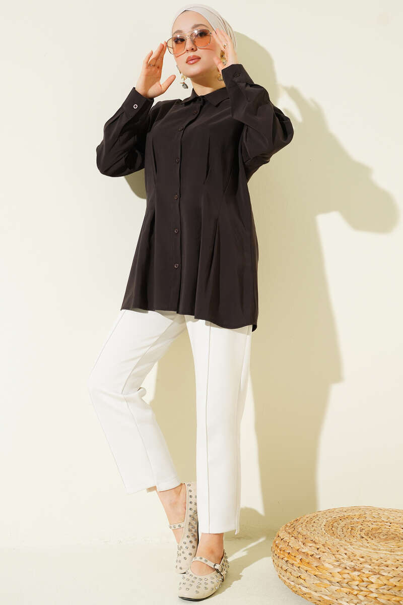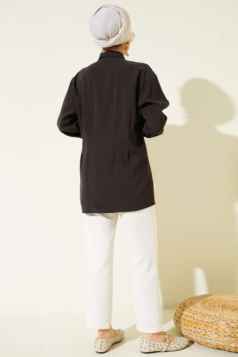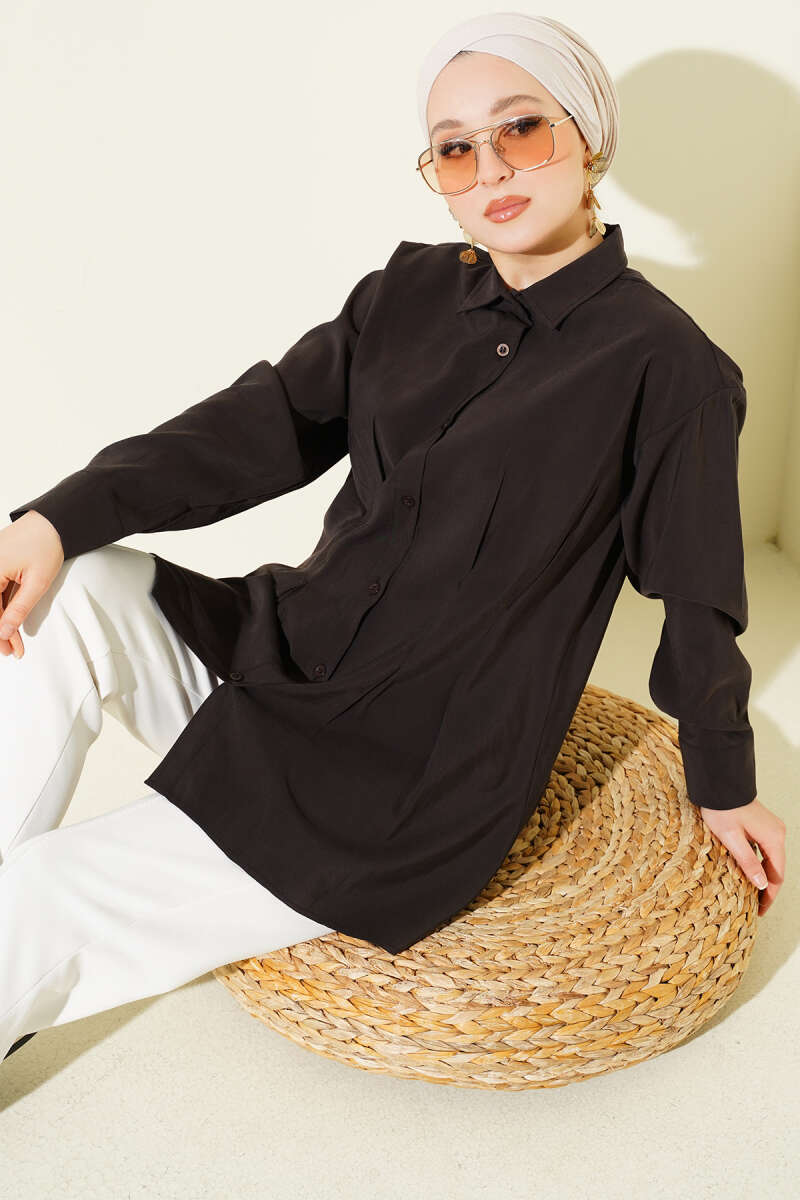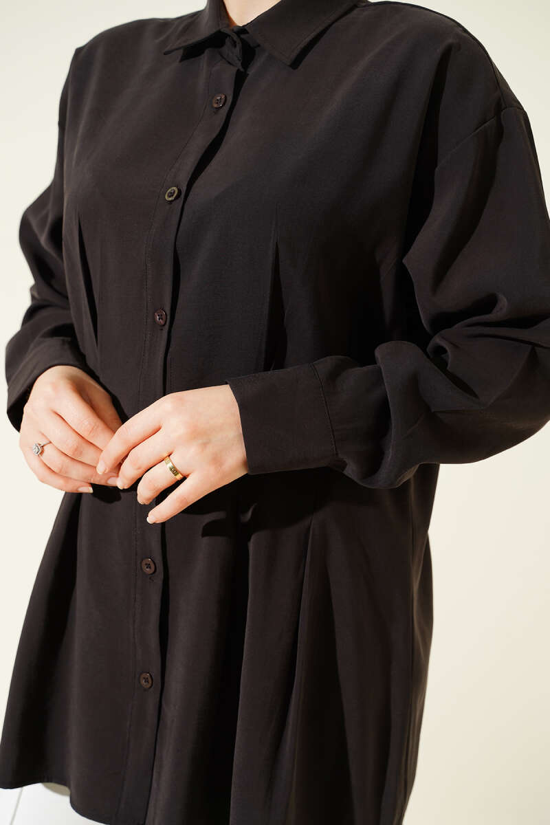 Bel Pensli Modal Gömlek Siyah