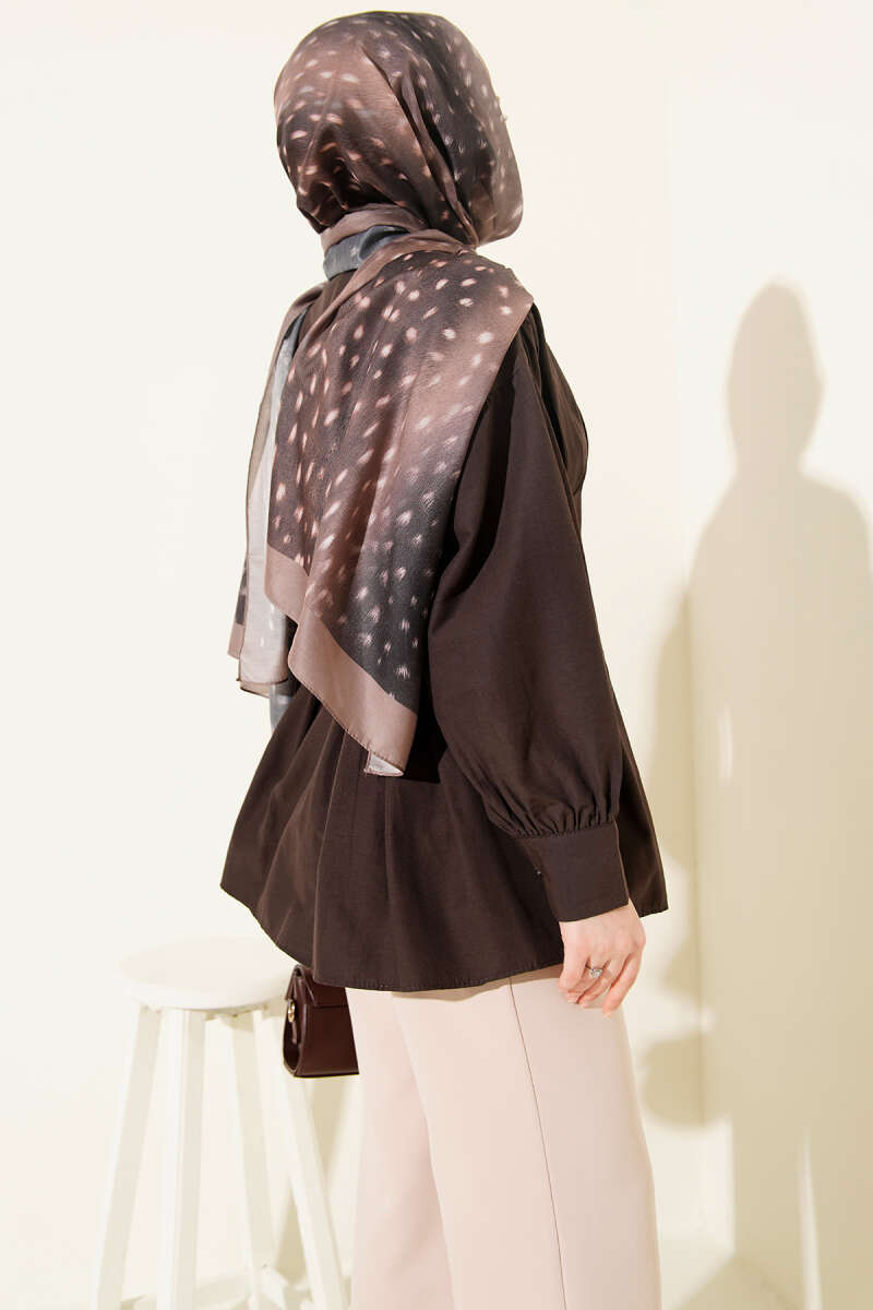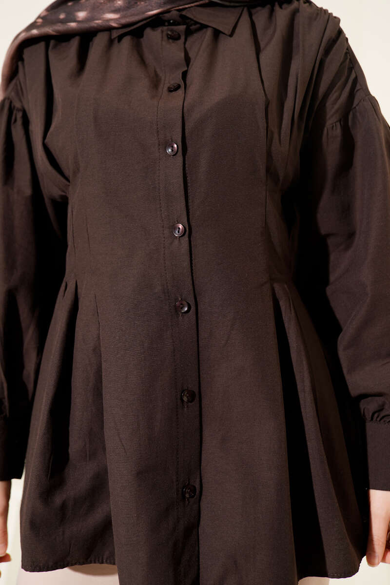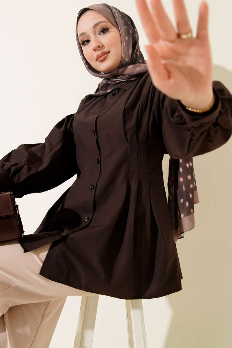 Balon Kol Tensel Tunik Kahve
