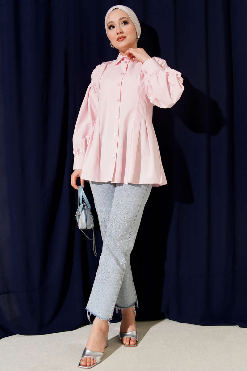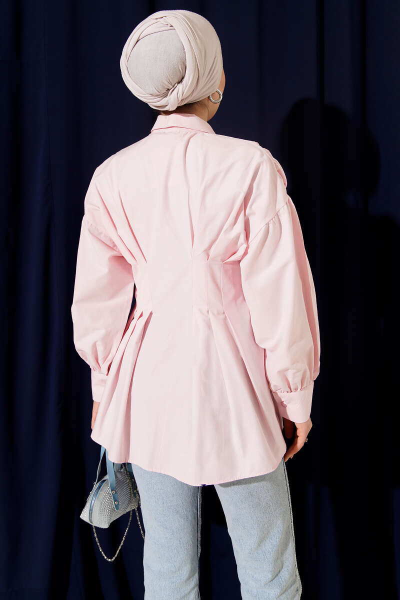 Bel Pensli Poplin Gömlek Pembe
