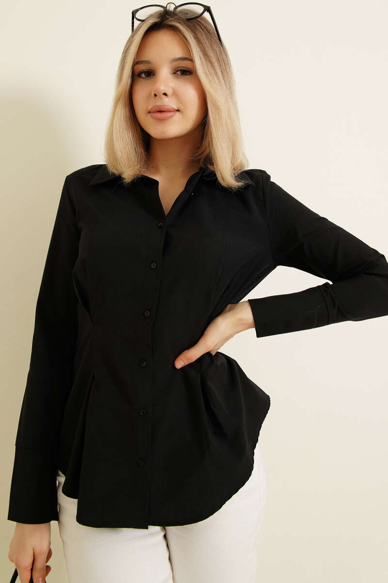 Gömlek Yaka Basic Düğmeli Gömlek Bej