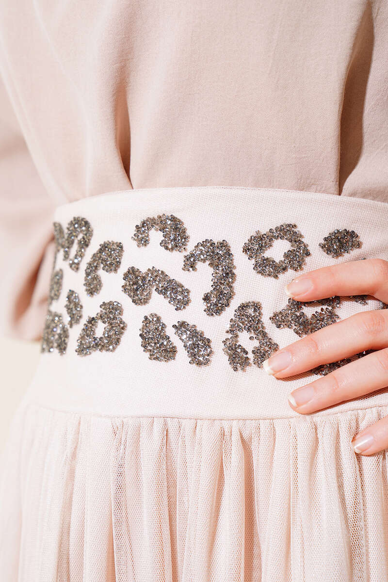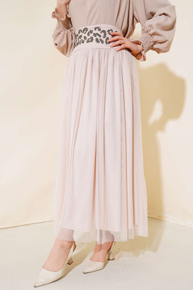 Yeni sezon eteğimiz sizlerle beraber. Uçuş uçuş uçuşan tülleriyle kombinlerinizi hareketlendirecektir. Eteğimizin belinde taşlar mevcuttur. Beli arkadan yarım fermuarlıdır. Eteğimiz astarlıdır. Renk seçeneklerimiz mevcuttur.