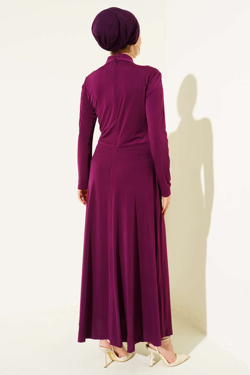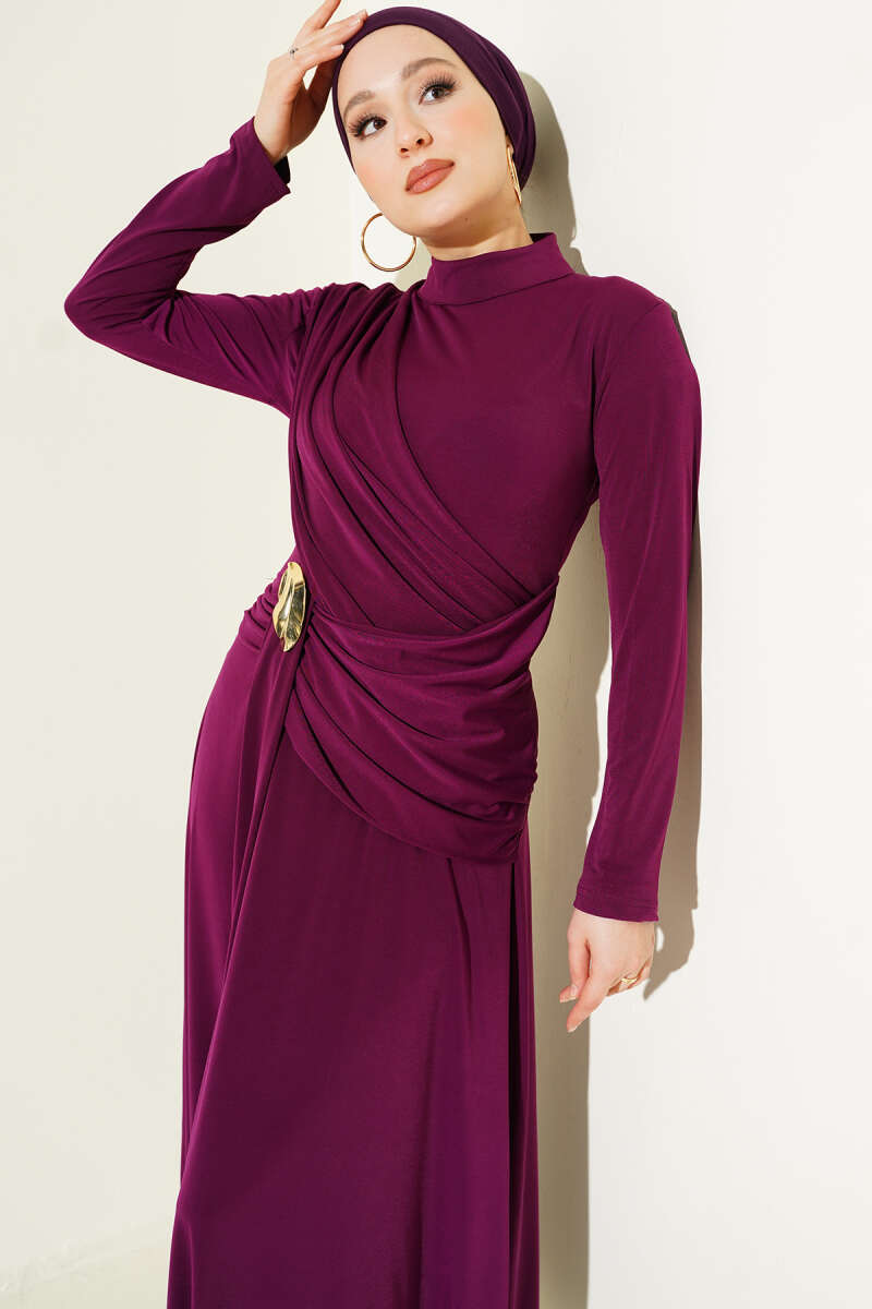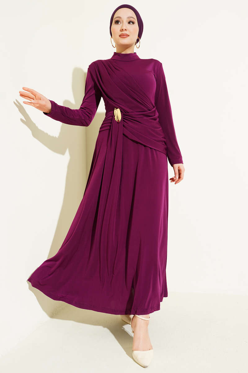Tek Omuz Pelerinli Saten Abiye Kahve