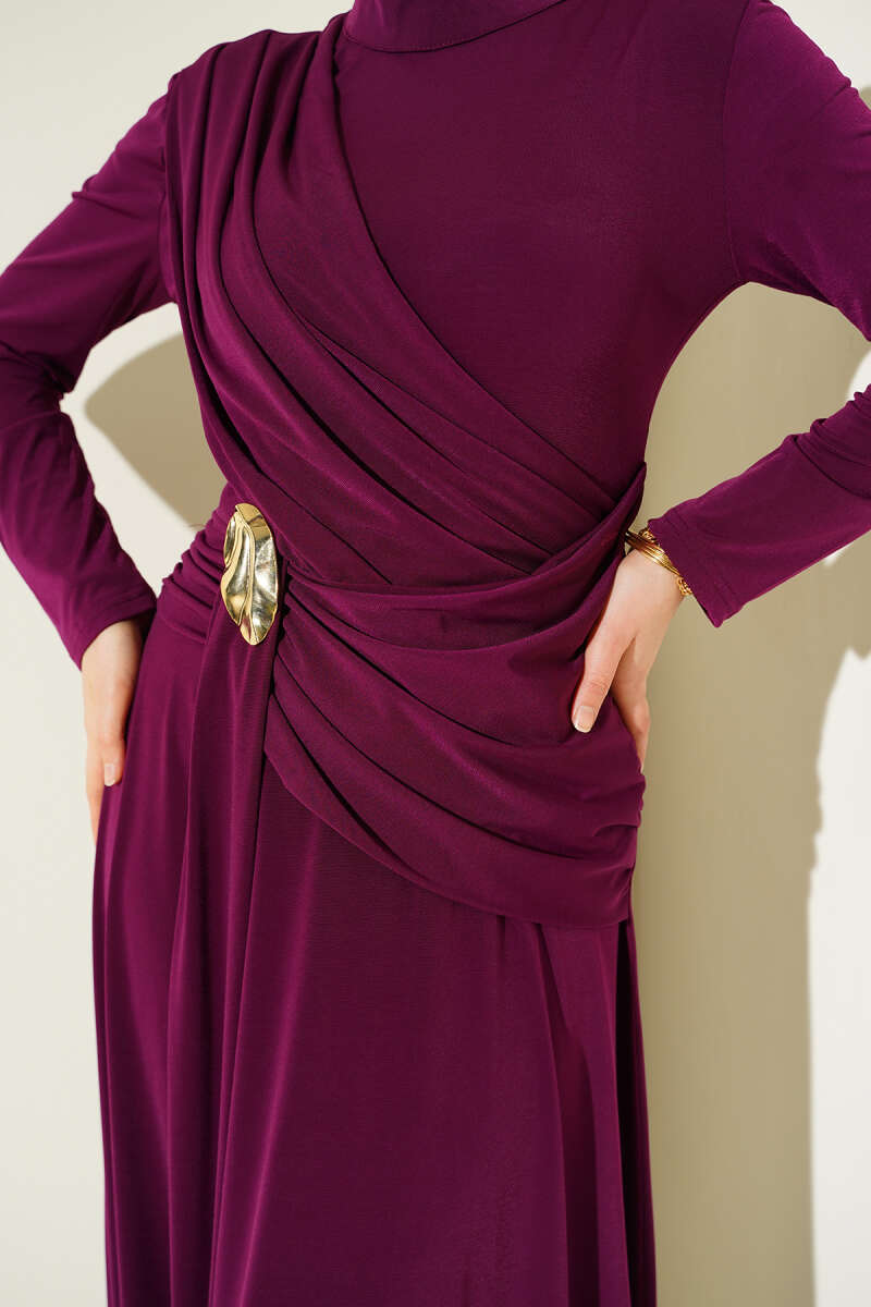 Tek Omuz Pelerinli Saten Abiye Zümrüt