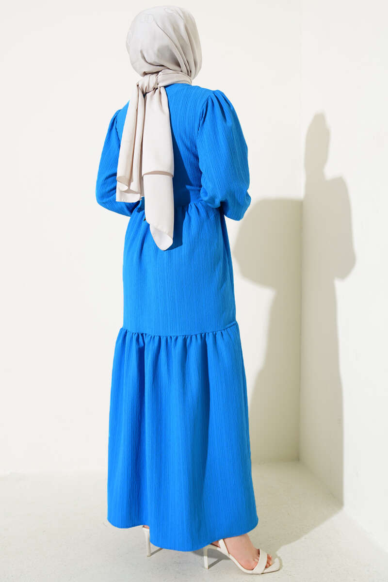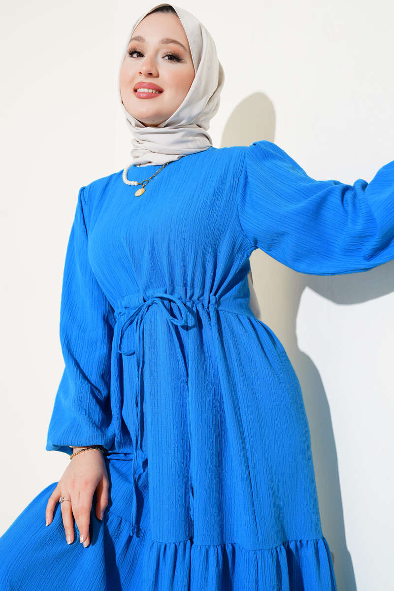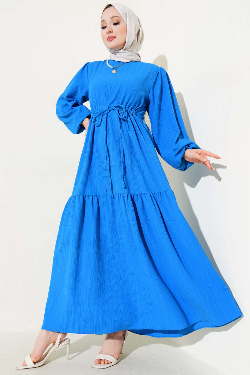 Kol Ucu Armalı İp Bağcıklı Elbise Lacivert