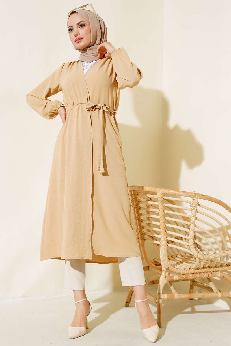 Yan Yırtmaçlı Duble Kol Tunik Bej