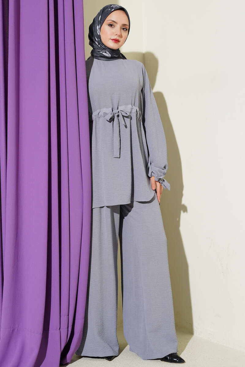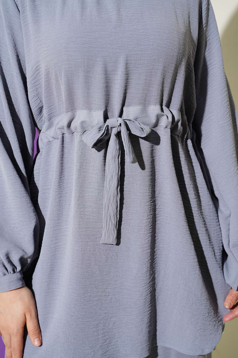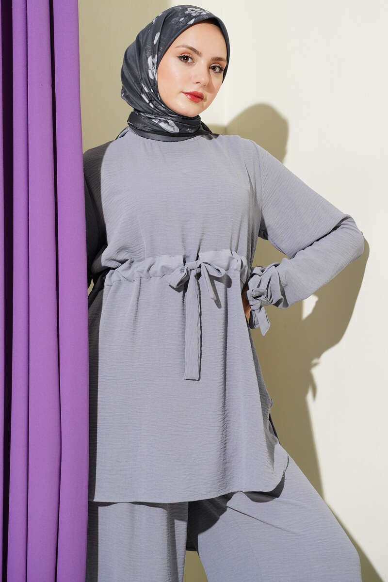 Bel Tünelli Ayrobin Tunik İkili Takım Gri