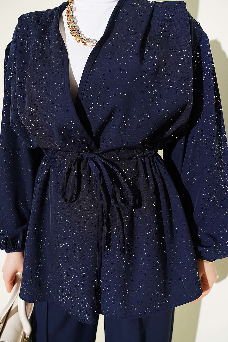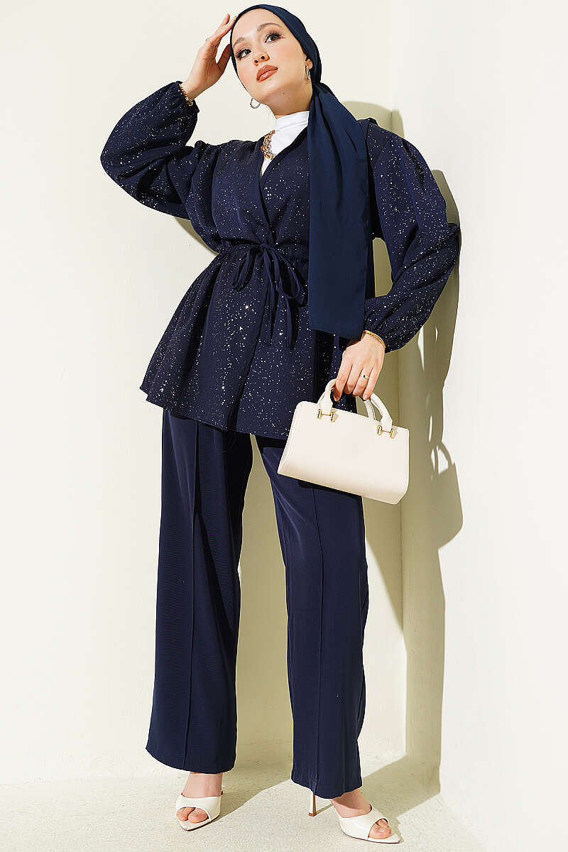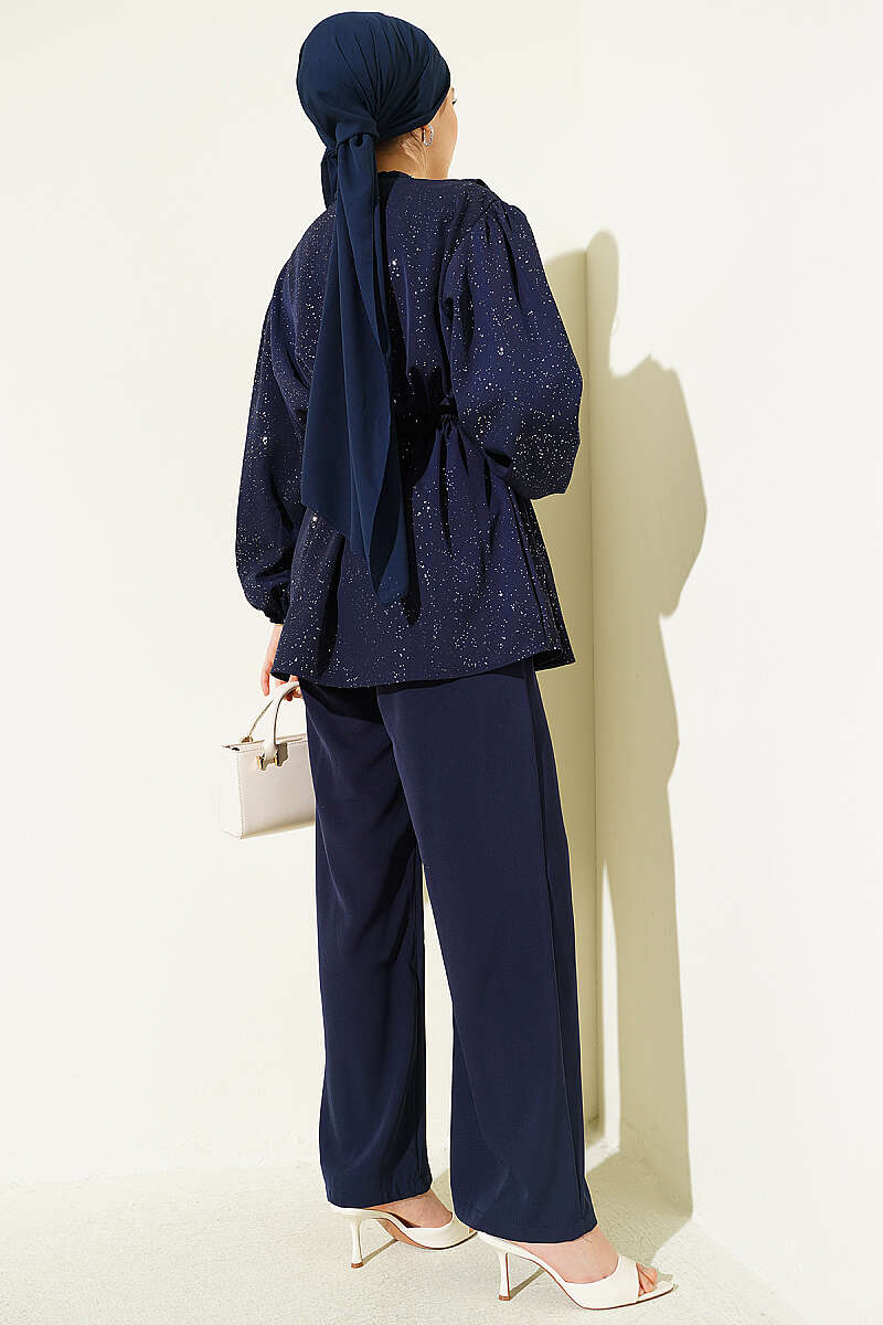 Bel Tünelli Bağlamalı Simli İkili Takım Lacivert