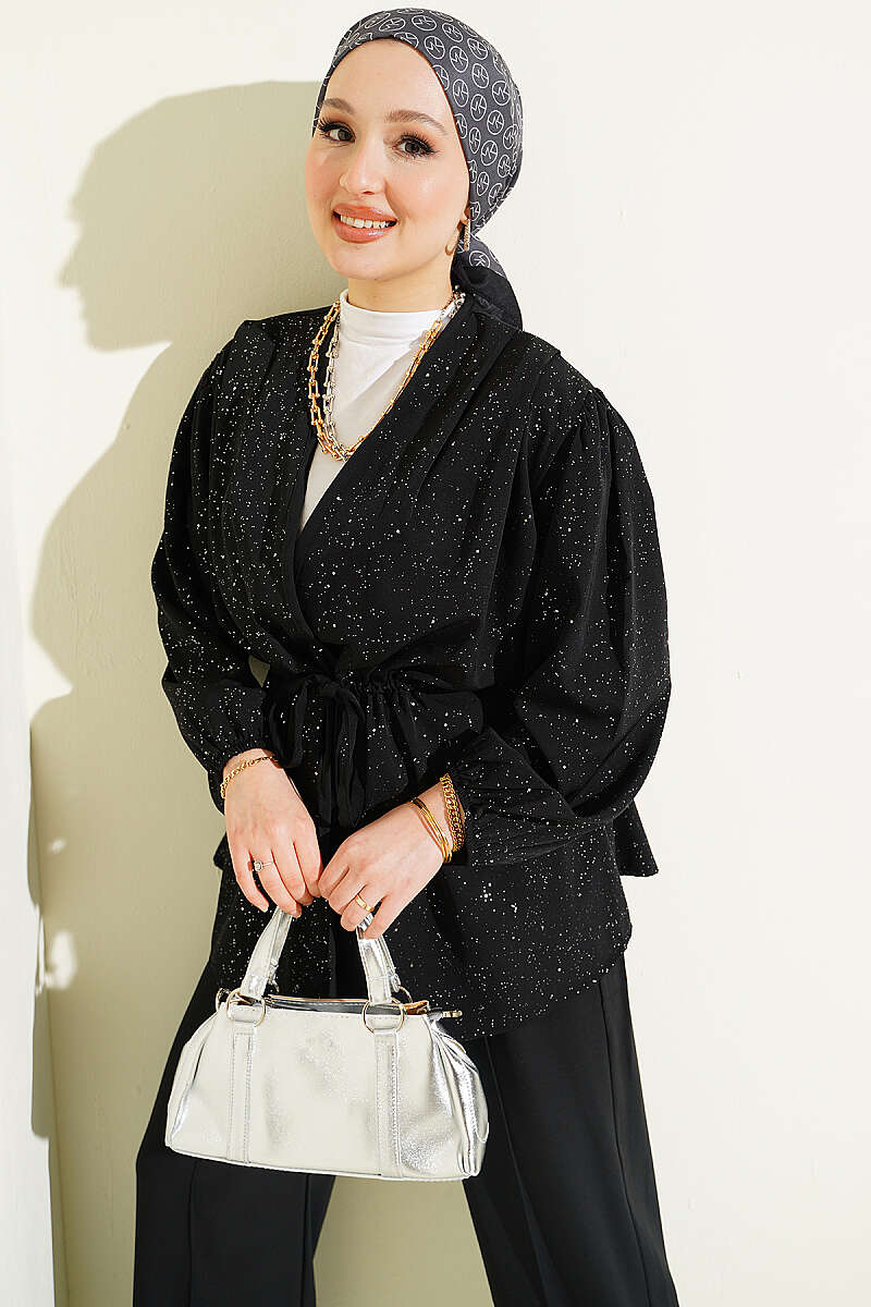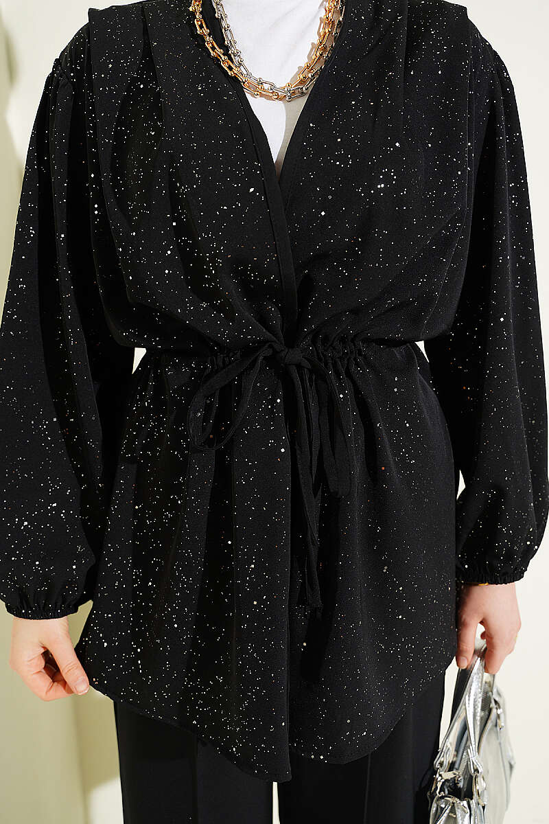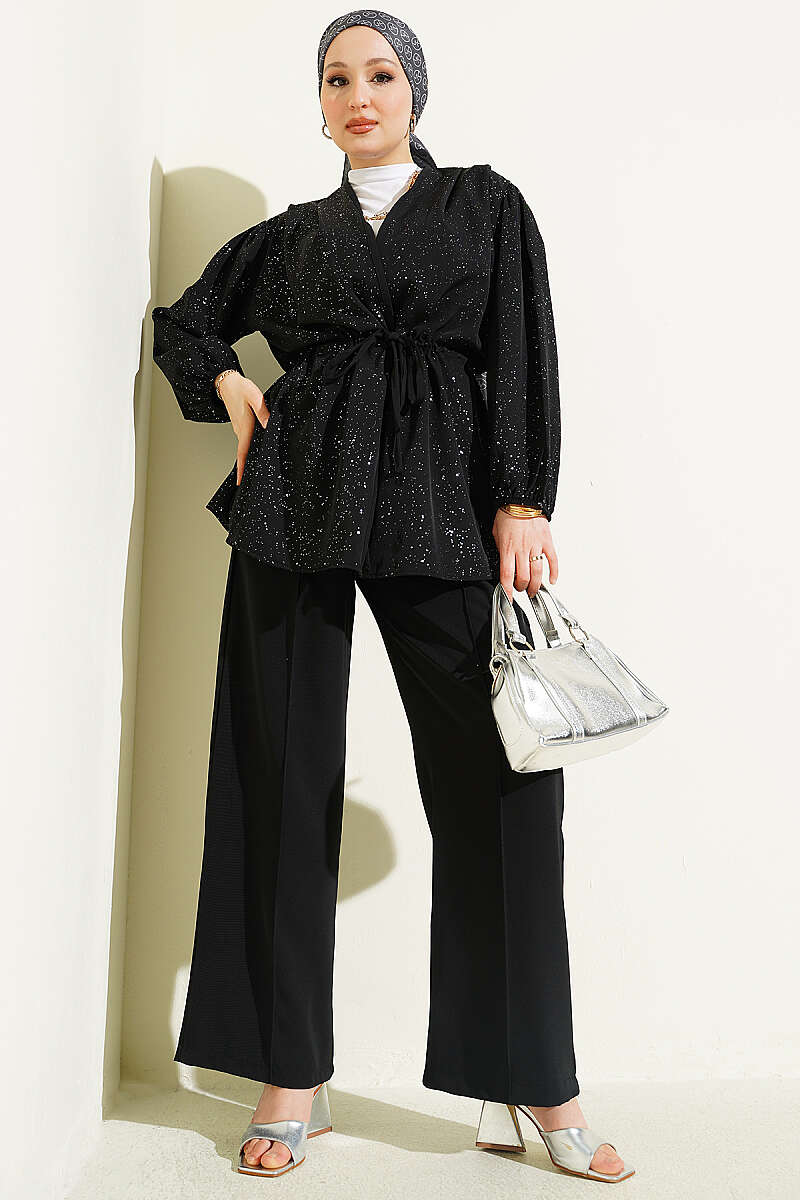 Bel Tünelli Bağlamalı Simli İkili Takım Lacivert