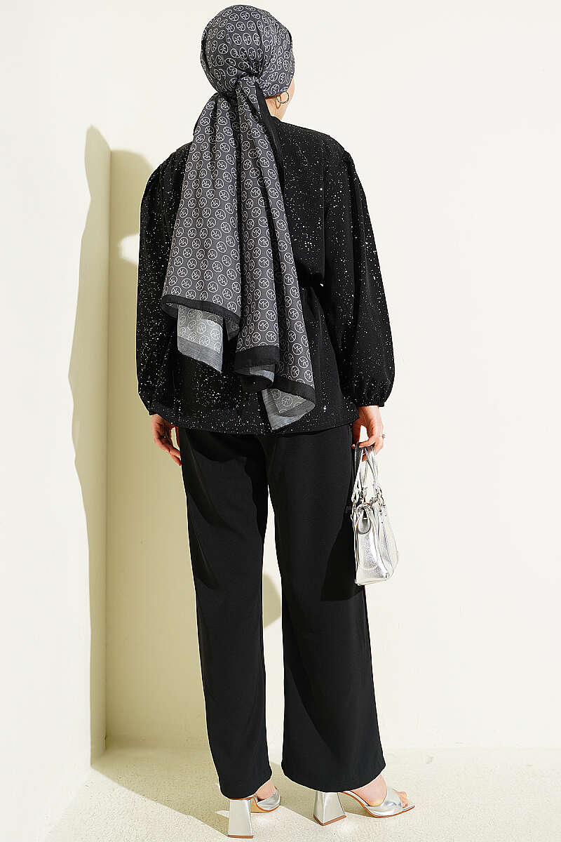 Çiçek Süslemeli Etekli İkili Takım Siyah