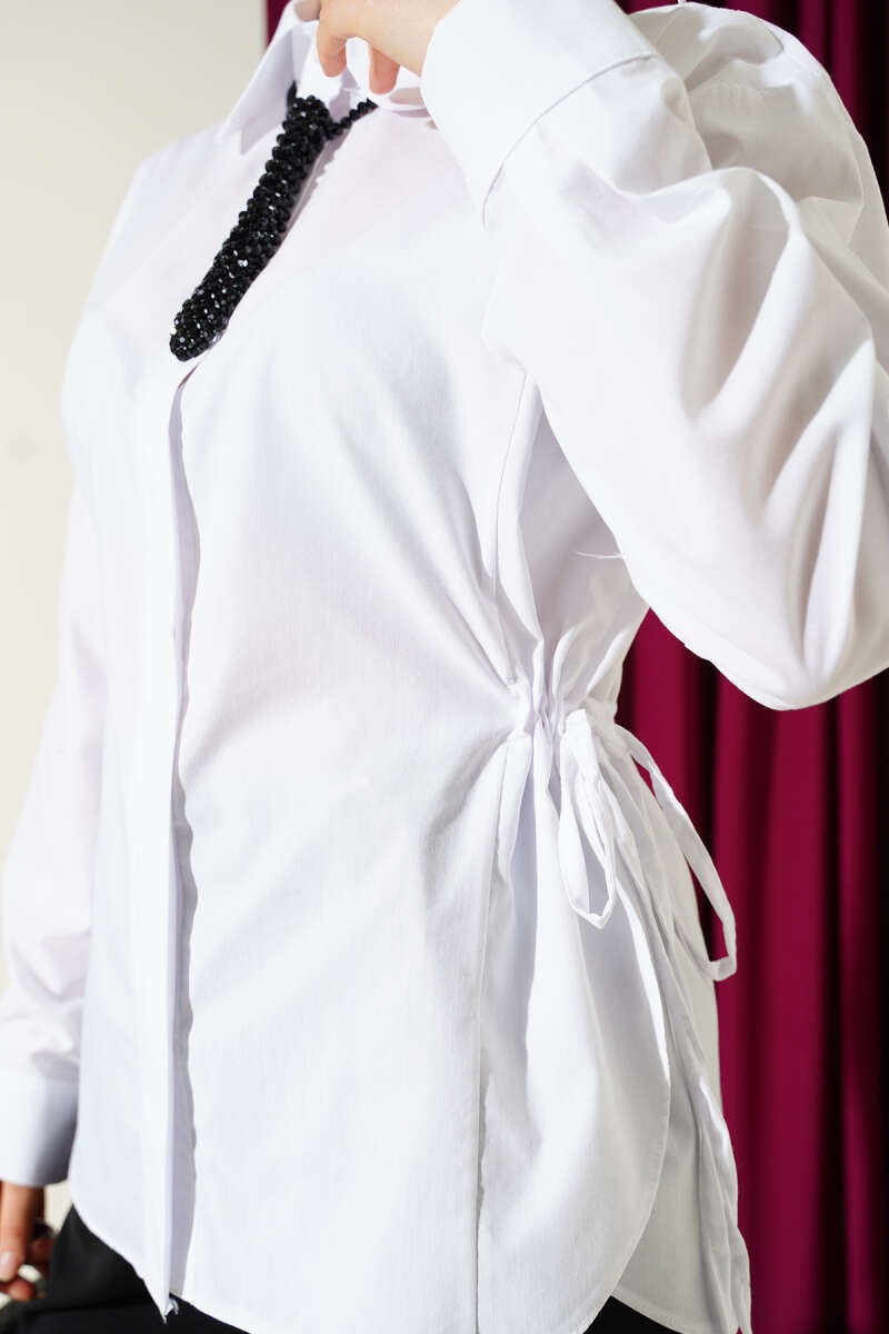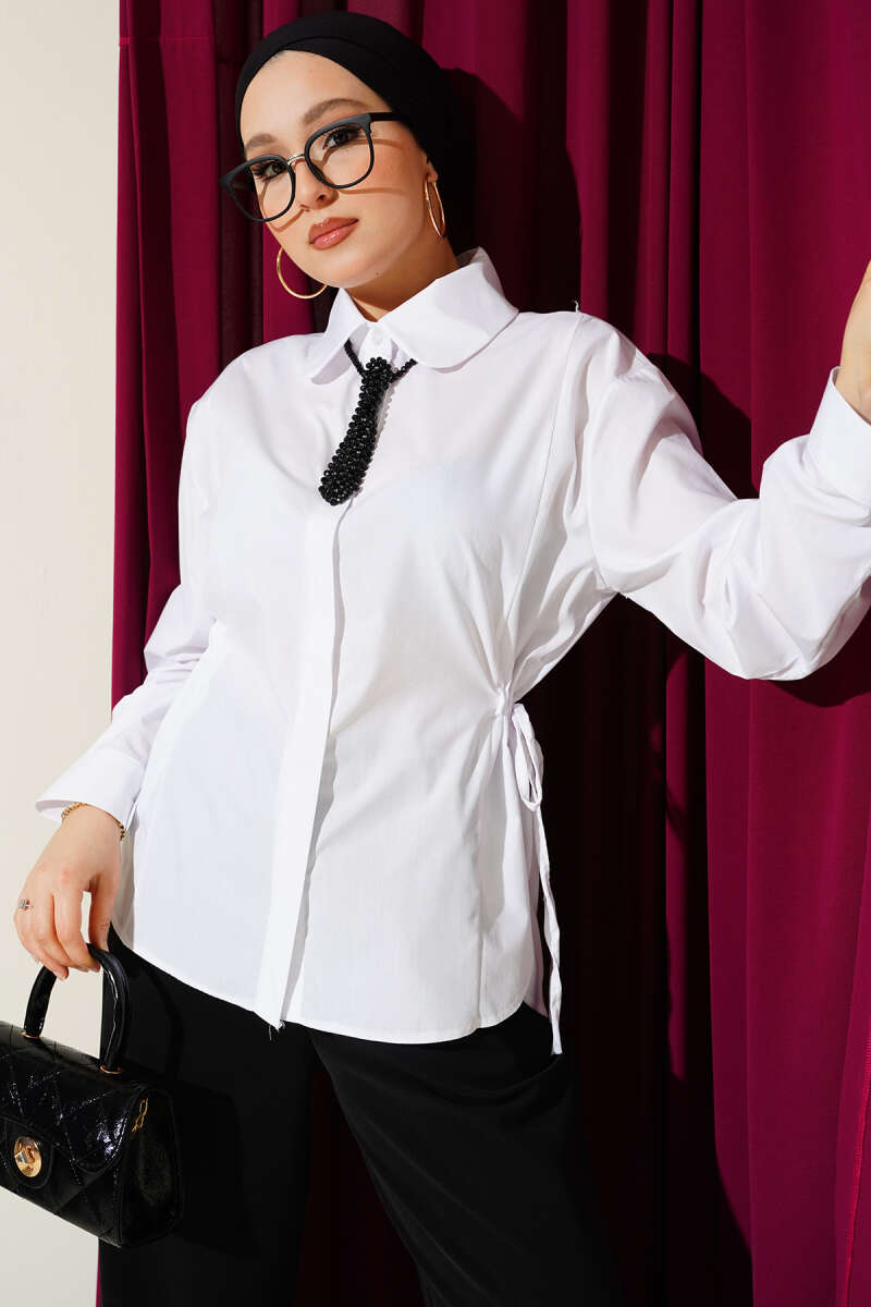 Yan Kemer Detaylı Gömlek Bej