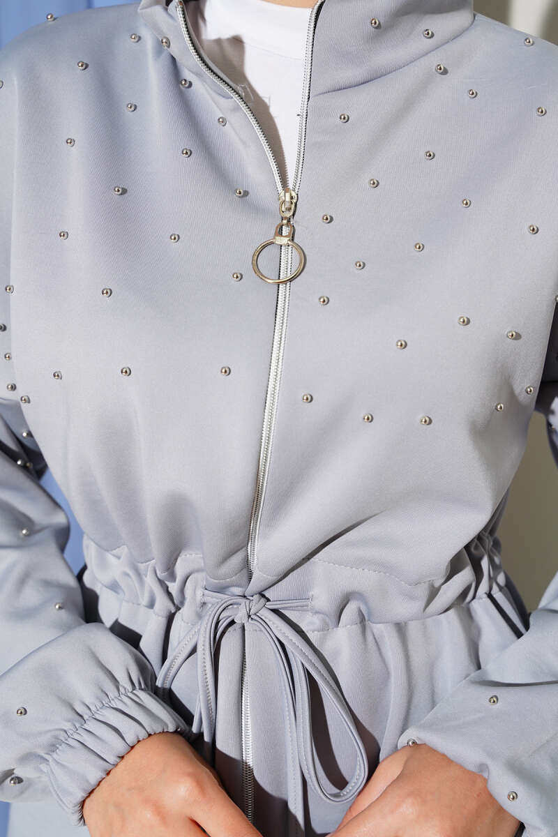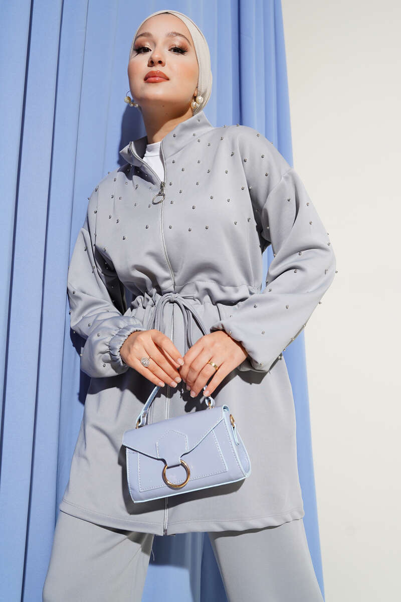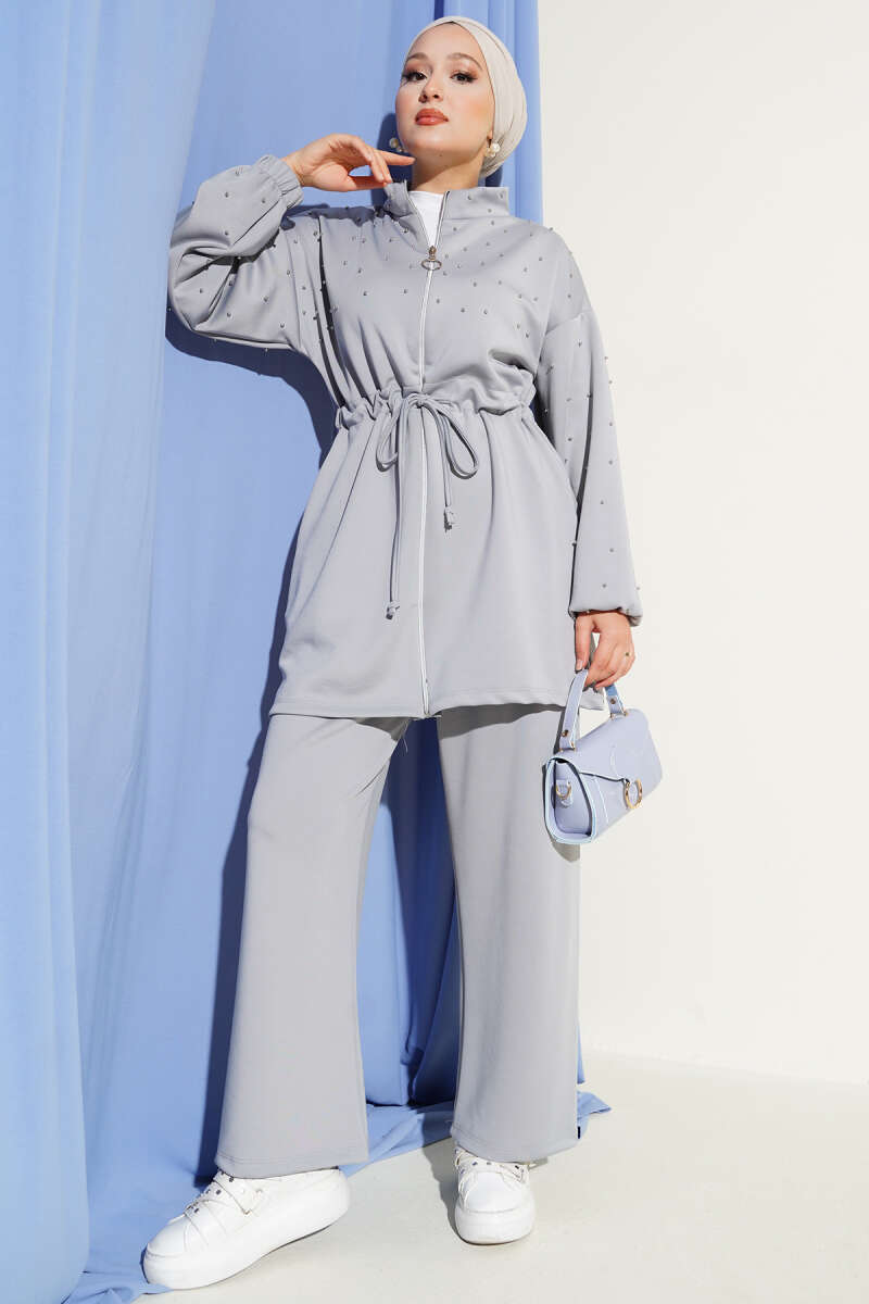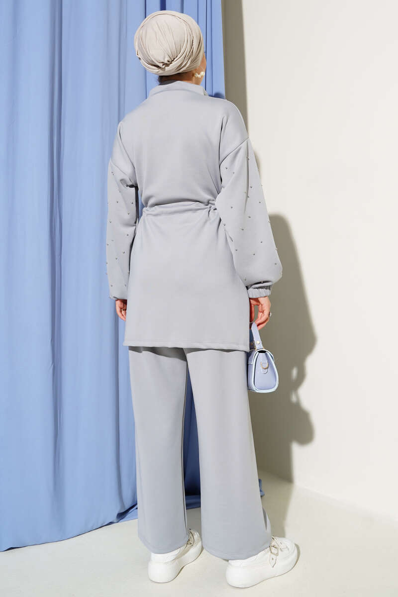 Bel Tünelli Boncuklu Scuba İkili Takım Gri