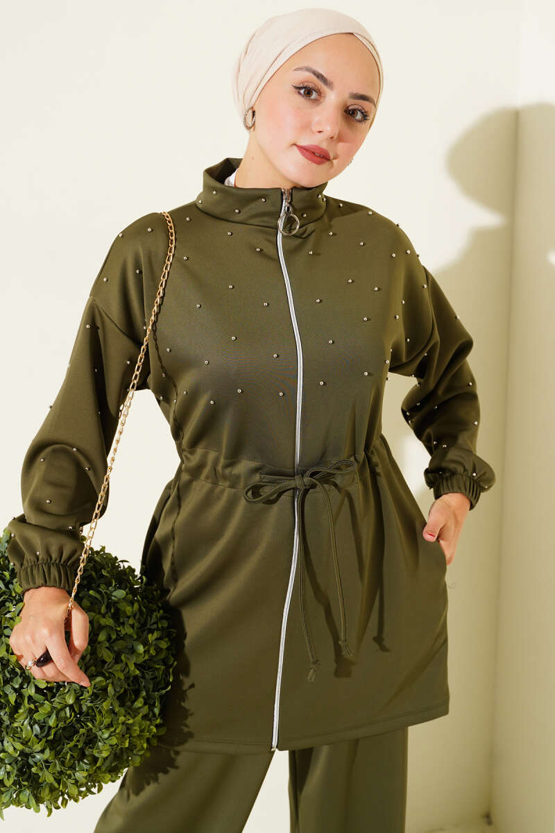 Bel Tünelli Boncuklu Scuba İkili Takım Haki