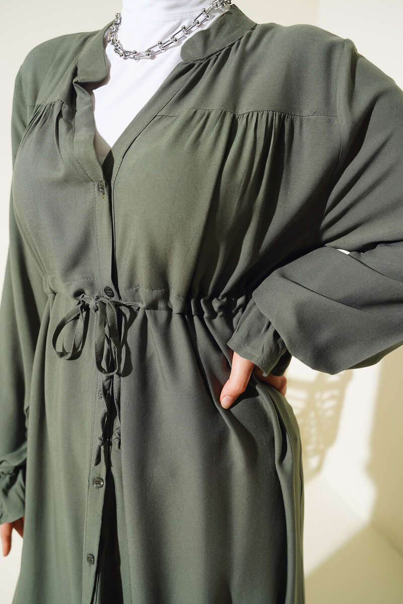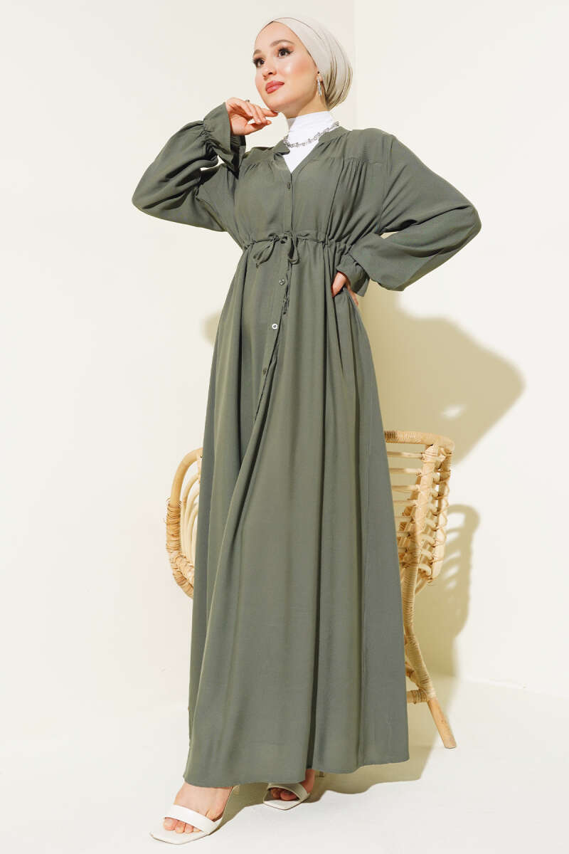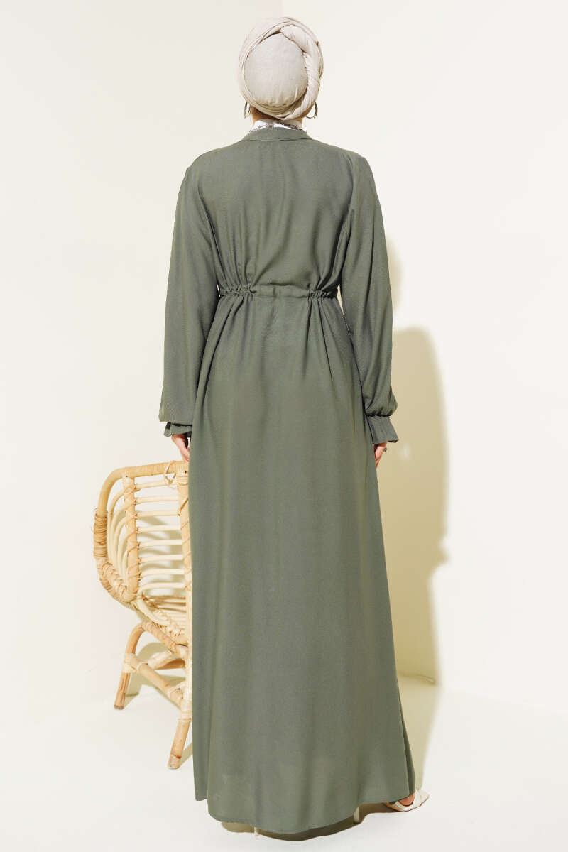 Gül Detaylı Pelerinli Abiye Elbise Haki