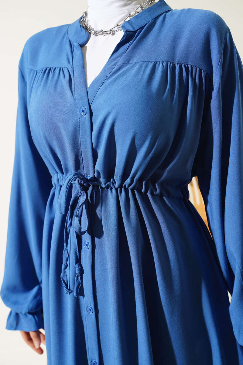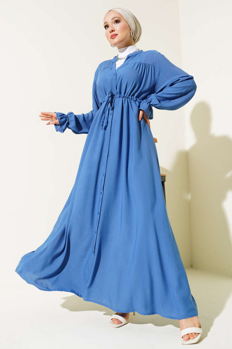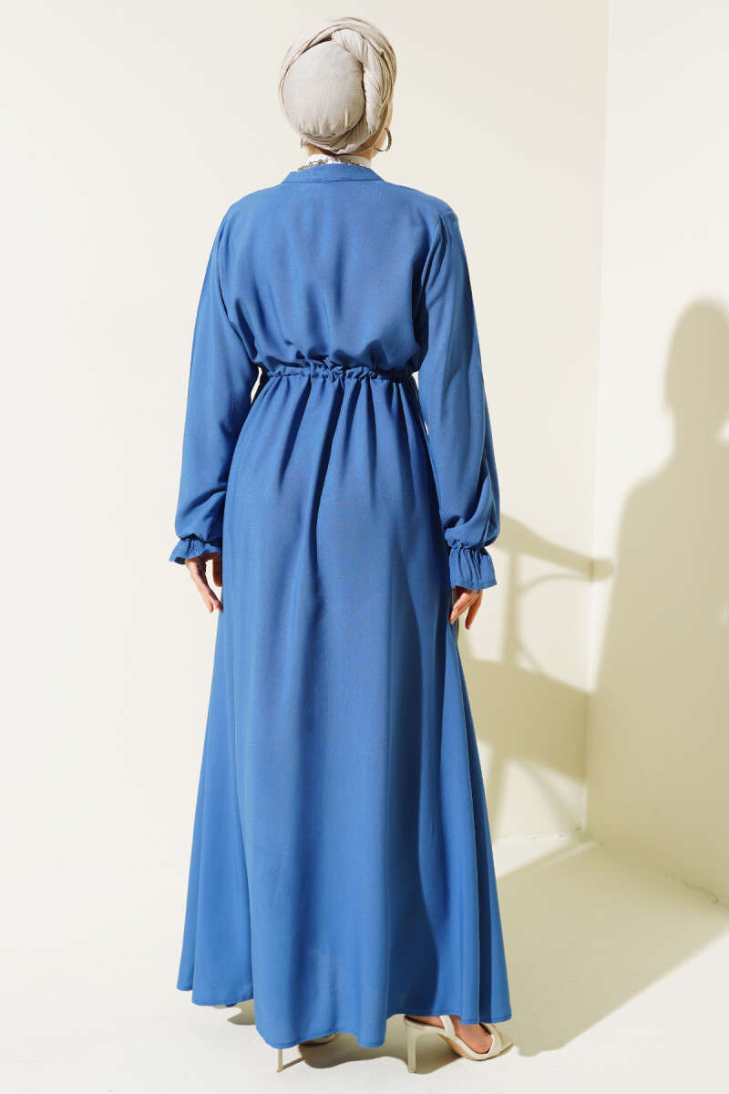Metal Düğmeli Kolsuz Kot Elbise Koyu Mavi