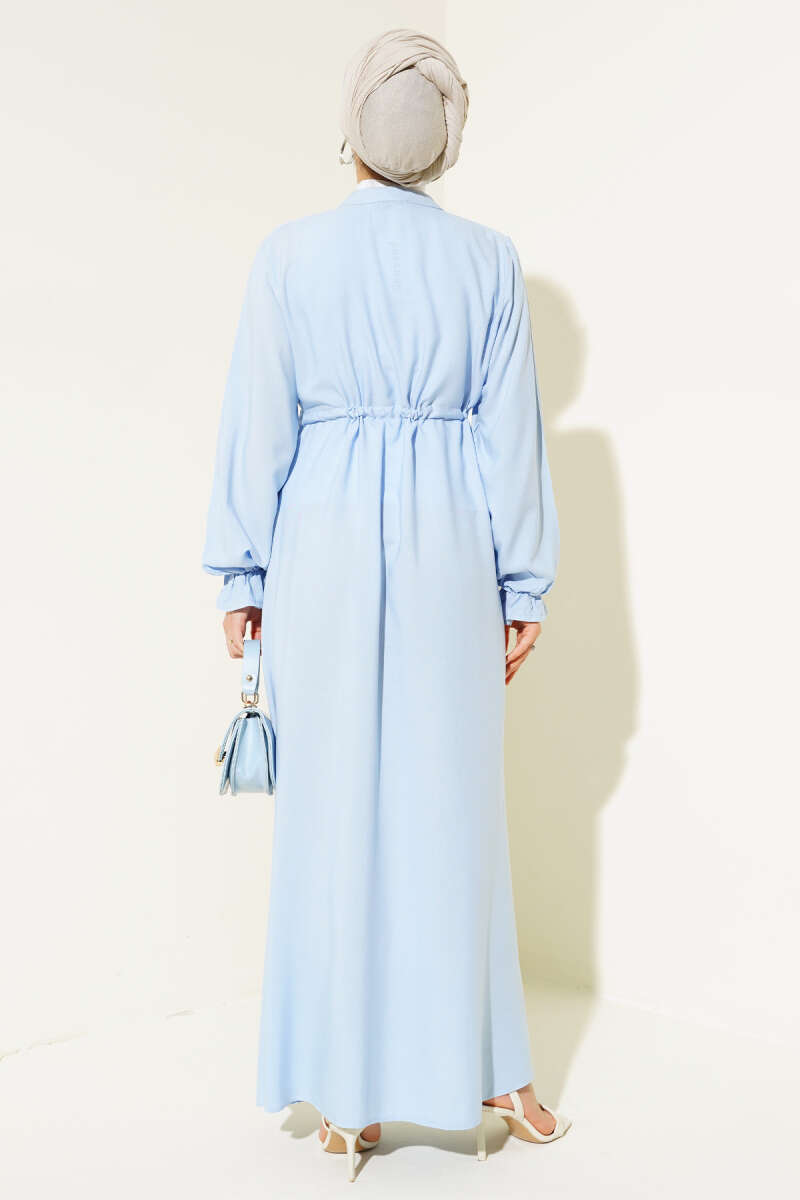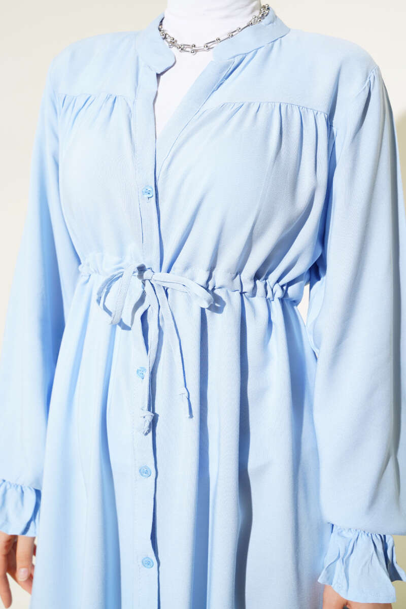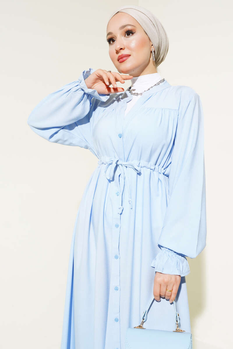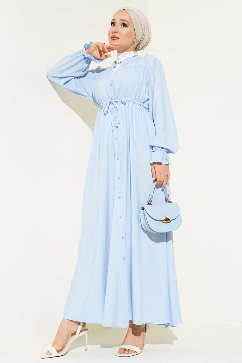 Metal Düğmeli Kolsuz Kot Elbise Koyu Mavi