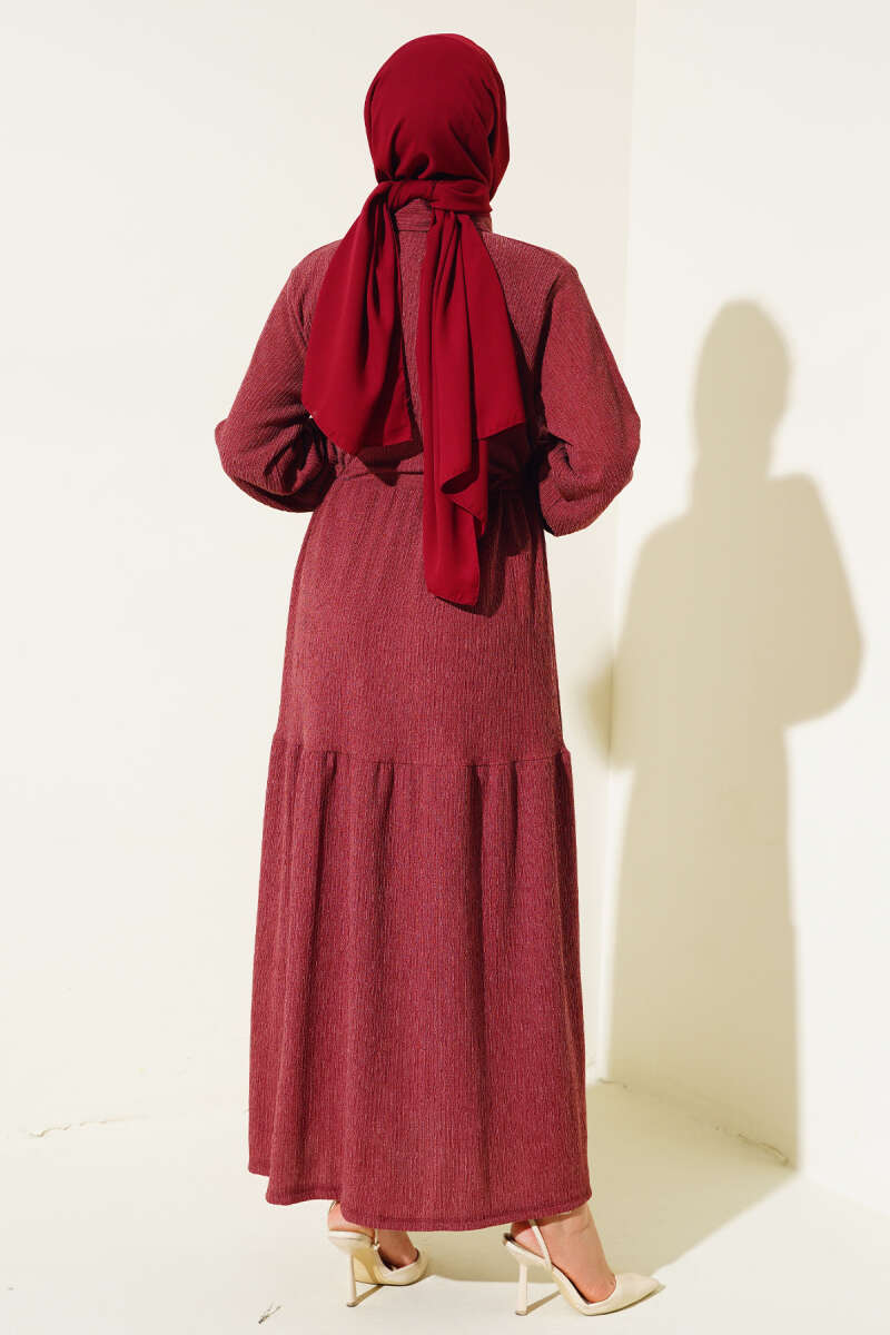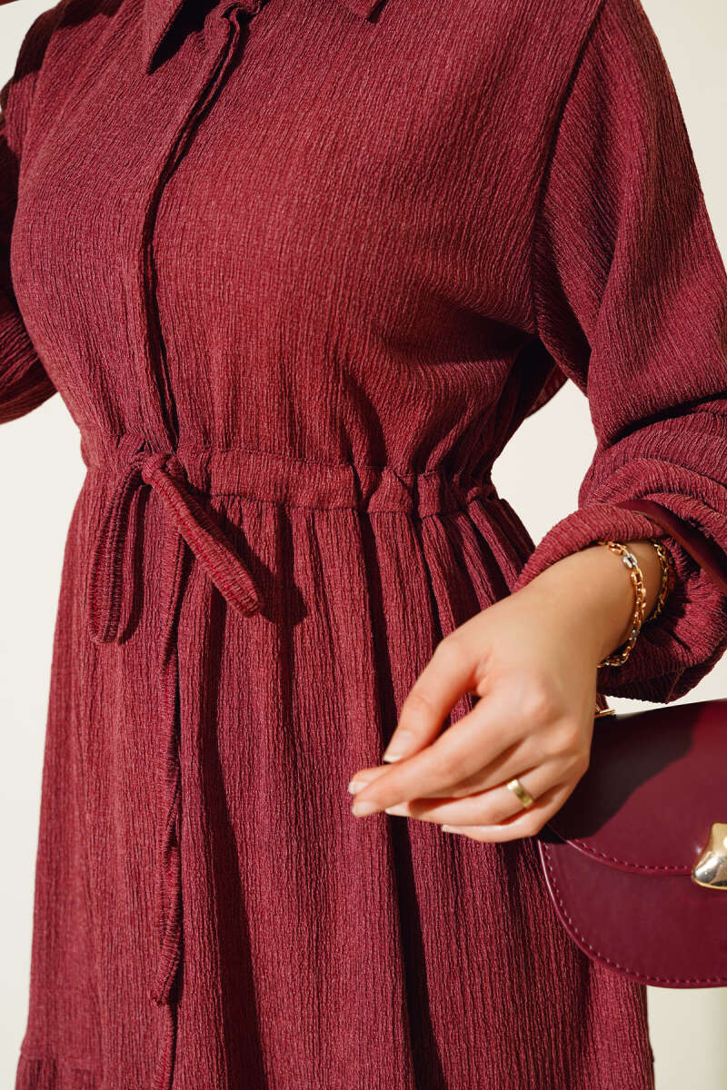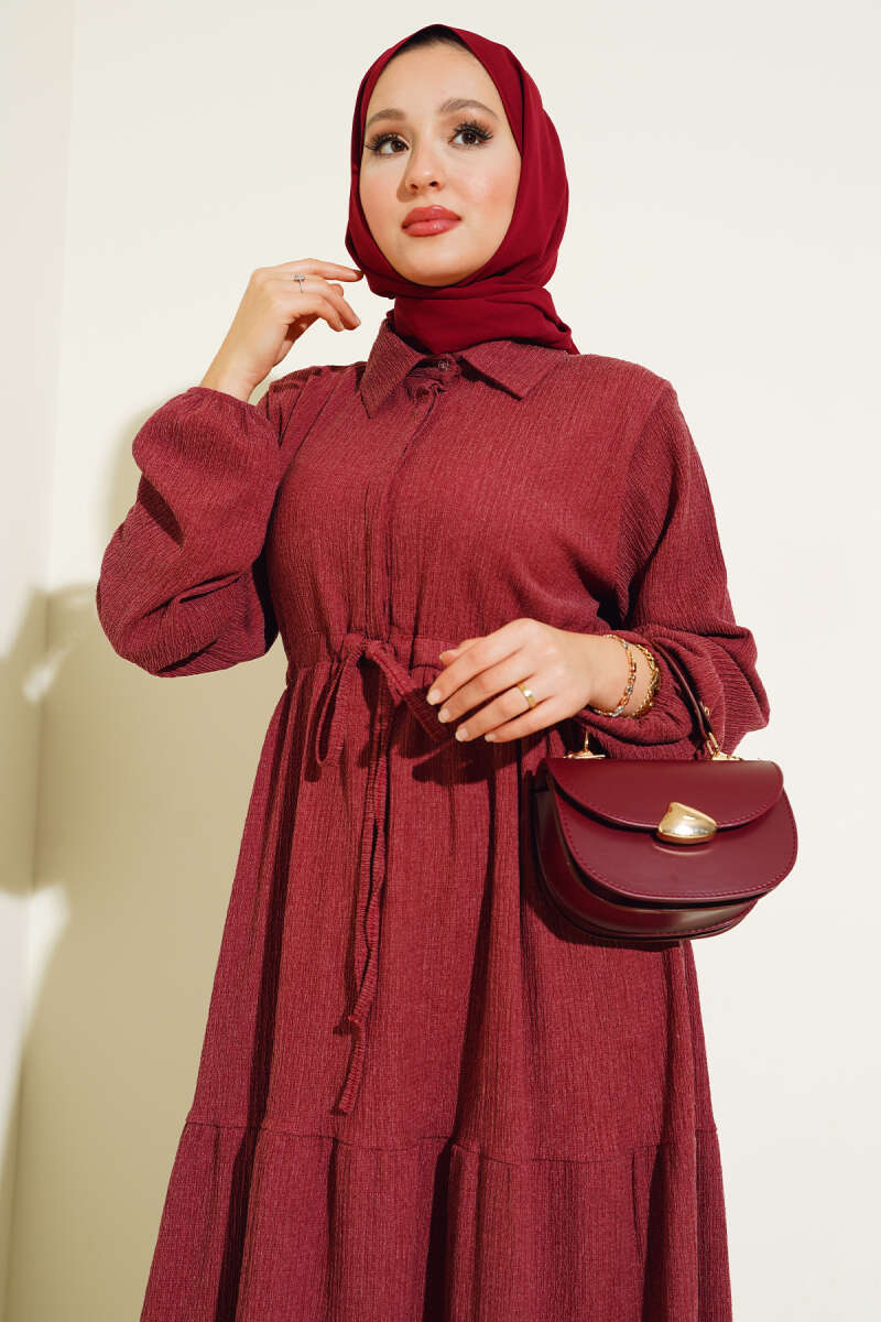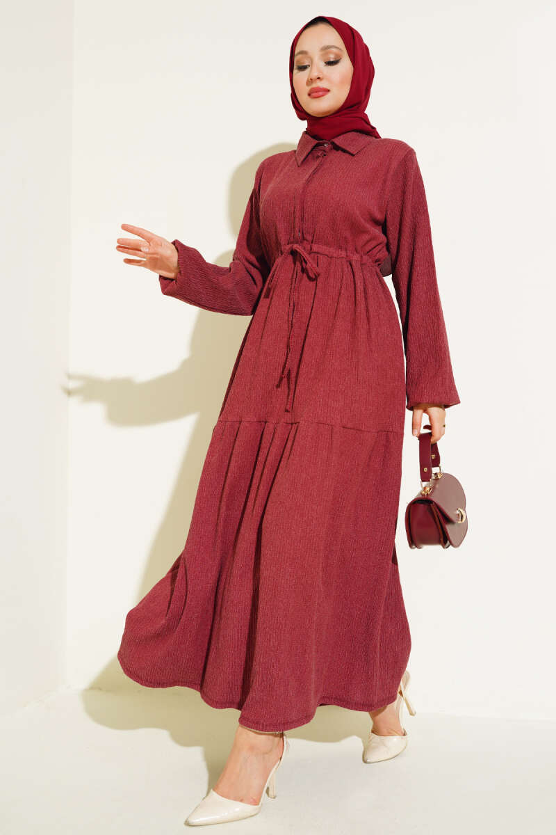 Kol Ucu Armalı İp Bağcıklı Elbise Kırmızı