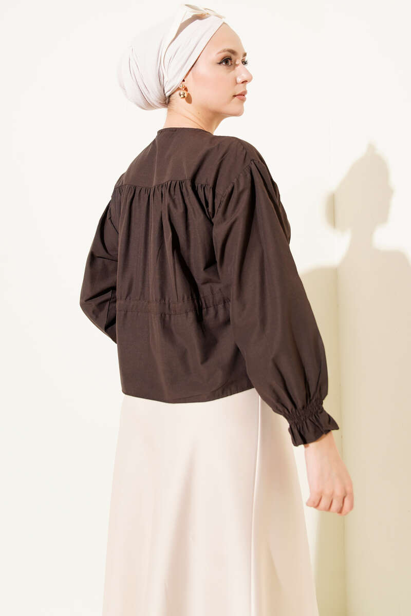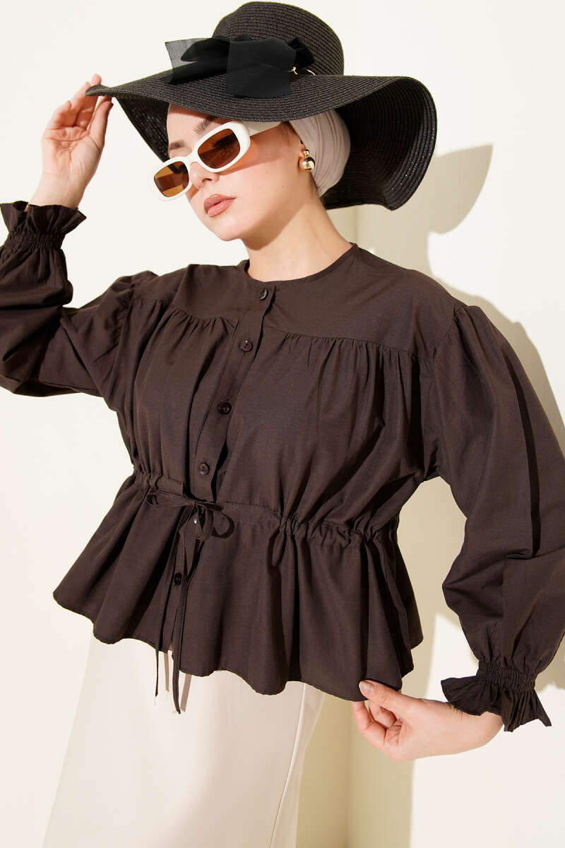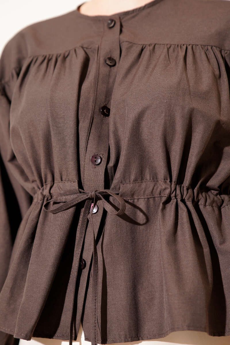 Bel Tünelli Büzgülü Kısa Gömlek Bordo