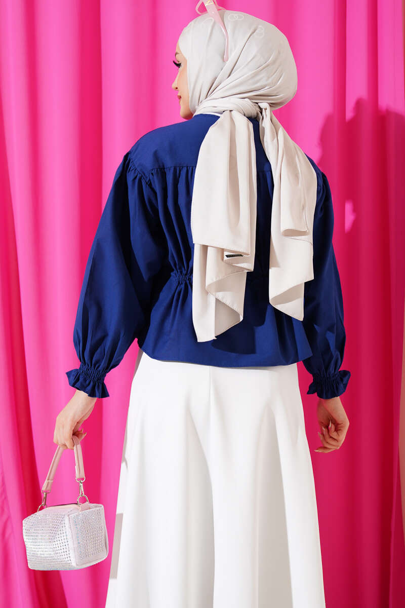 Balıkçı Yaka Balon Kol Triko Tunik Mavi