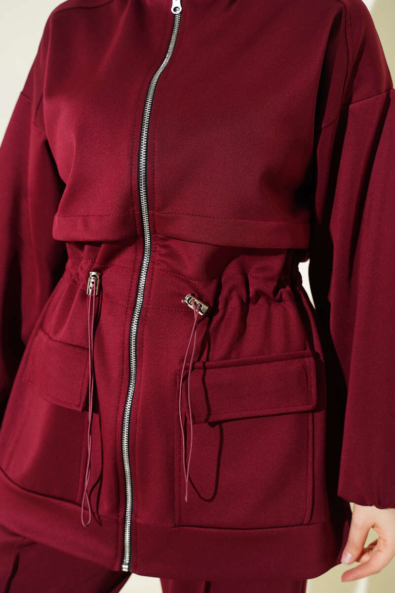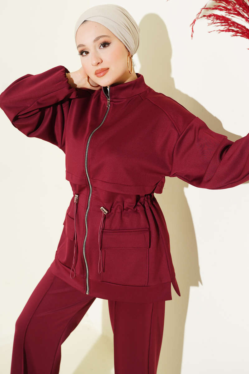 Fermuarlı Basic Loyşa İkili Takım Bordo