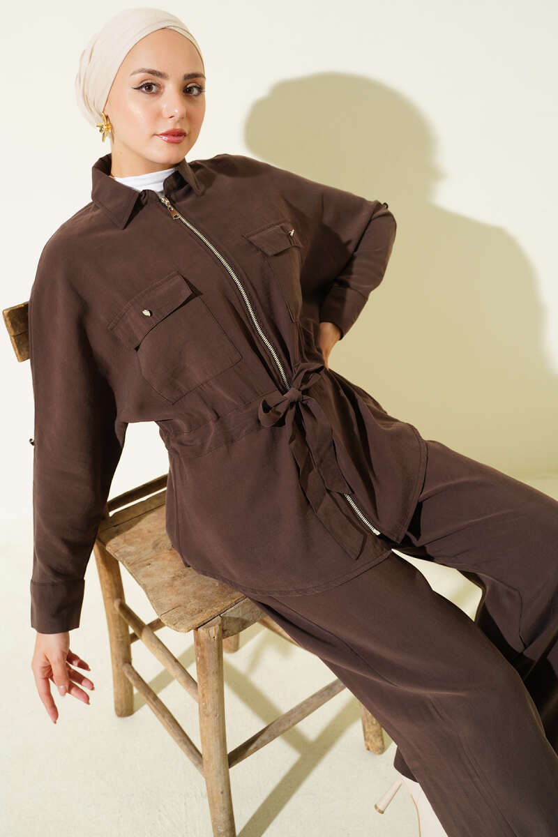Mini Boncuk Detaylı Eşarp Acı Kahve