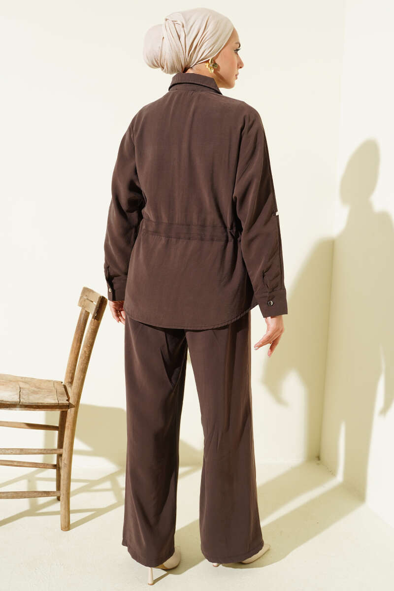Kazayağı Detaylı Düğmeli Triko İkili Takım Yağ Yeşili