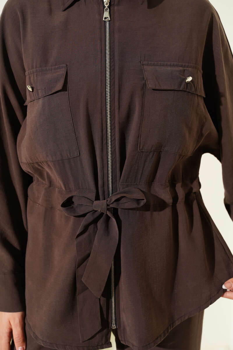 Gold Düğmeli Kemerli Goldfox Ceket Füme