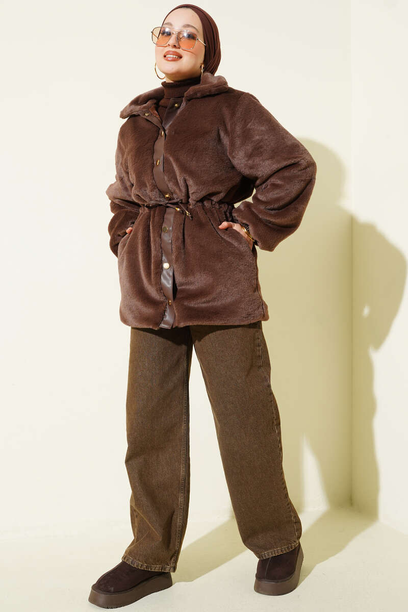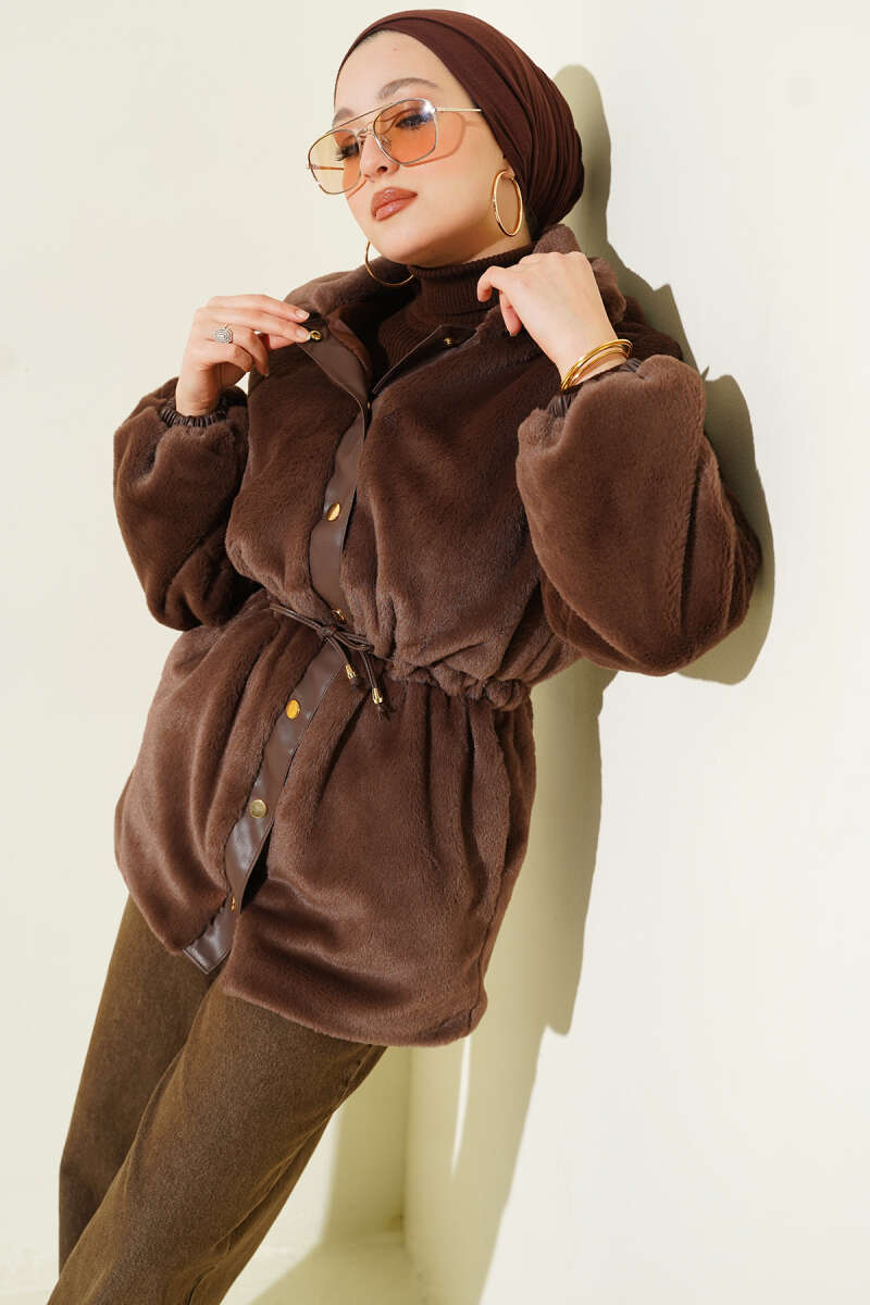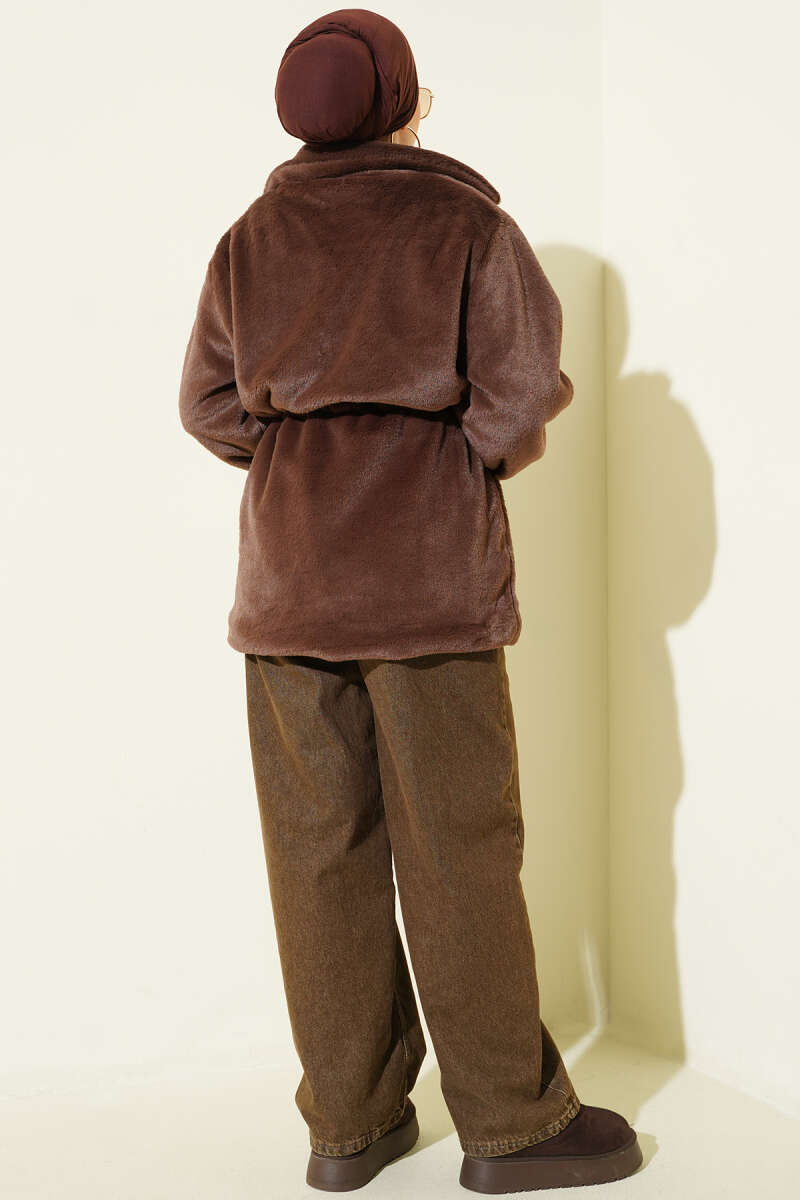 Düğmeli Kuşaklı Basic Ceket Kahve