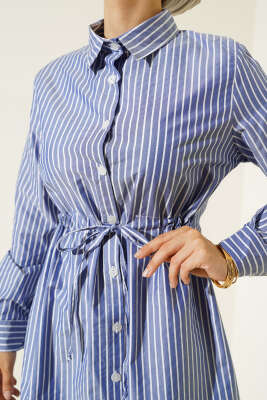 Bel Tünelli Çizgili Uzun Gömlek Saks