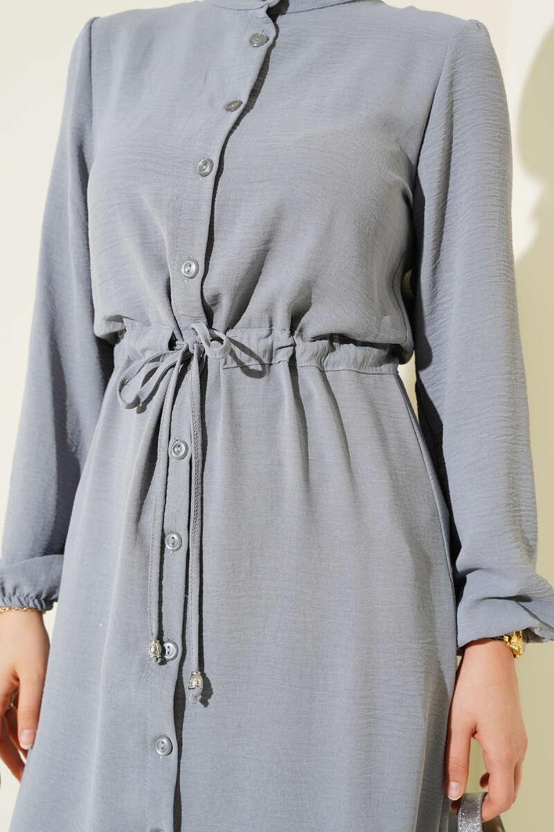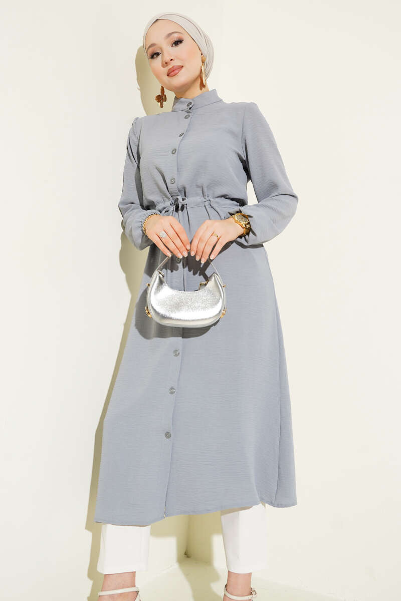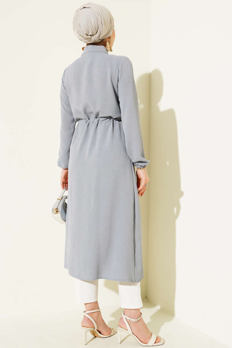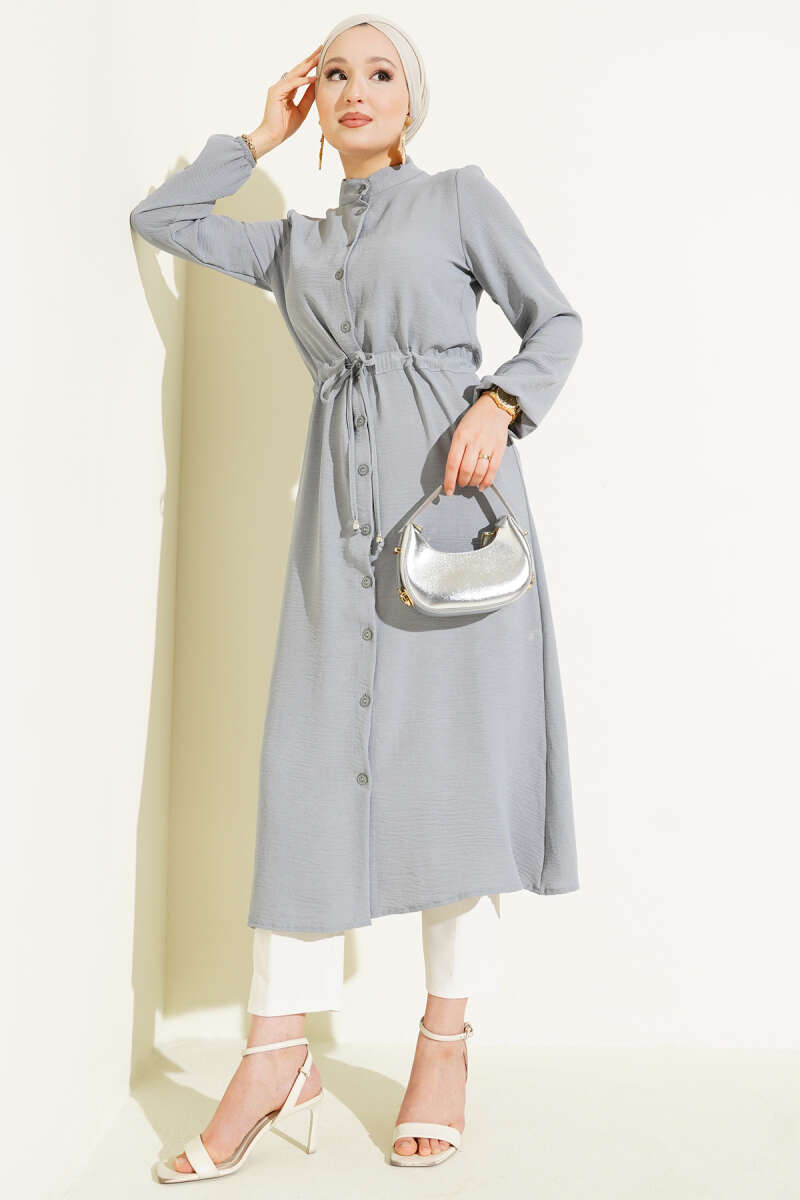 Bel Tünelli Düğmeli Ayrobin Kap Gri