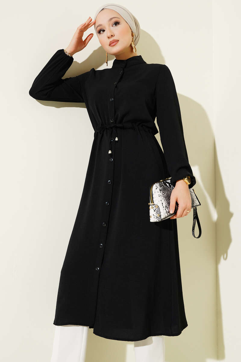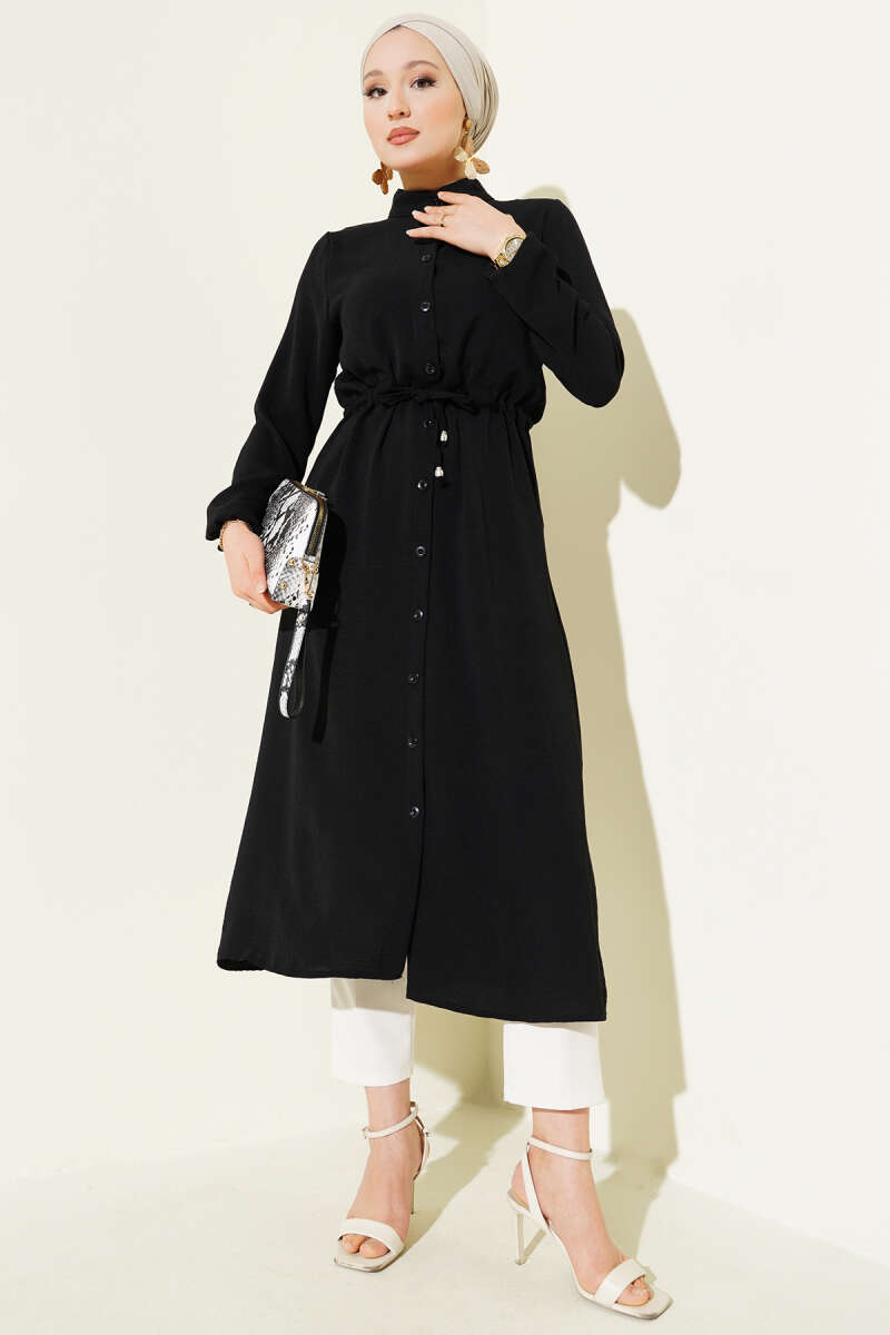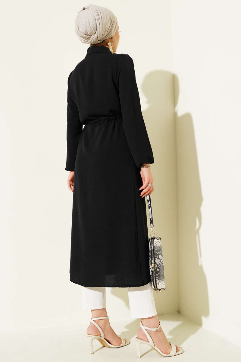 Bel Tünelli Düğmeli Ayrobin Kap Siyah