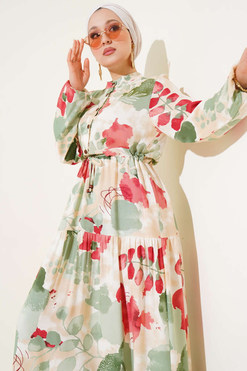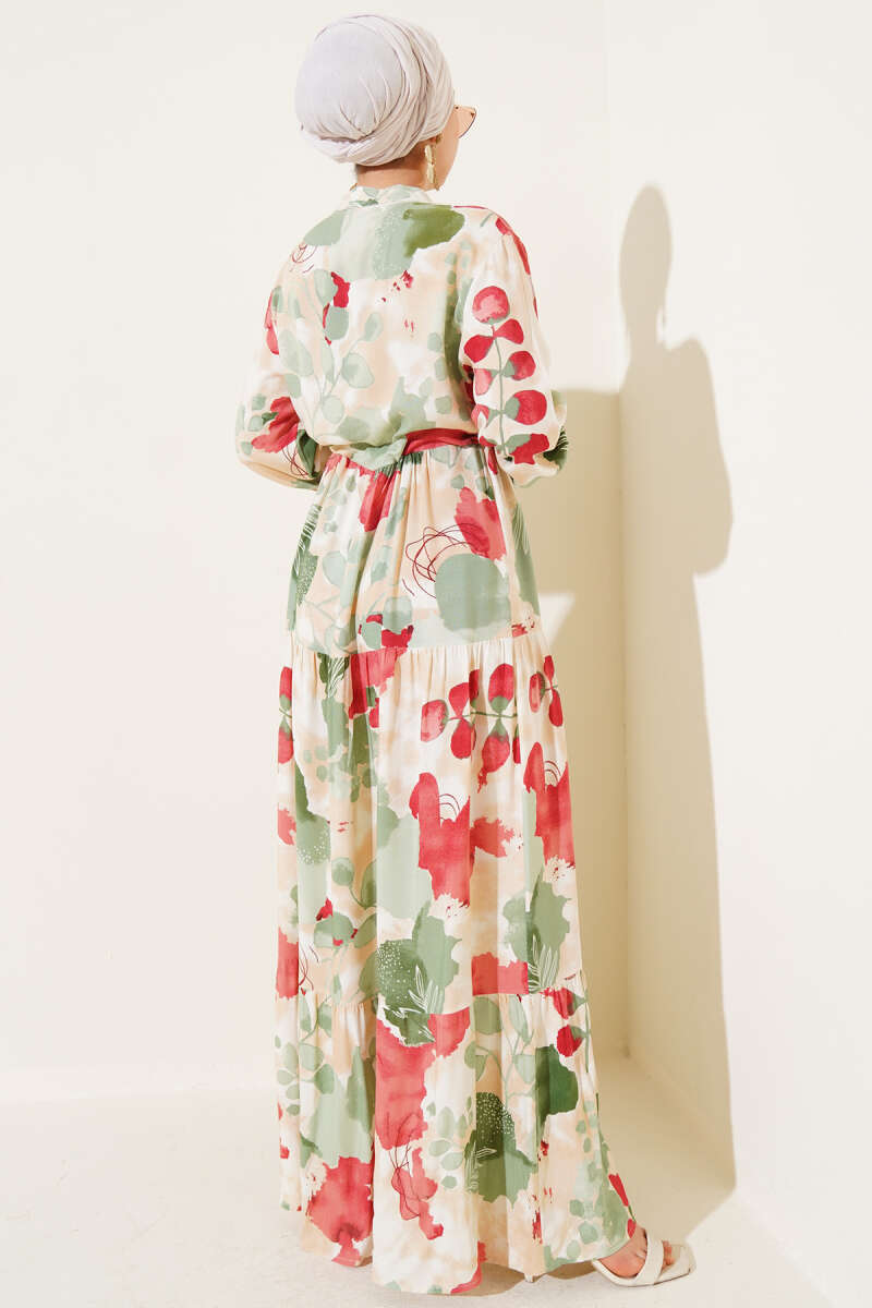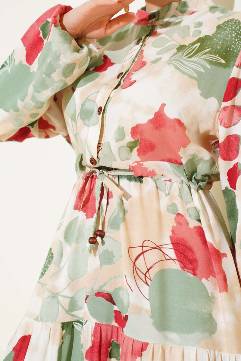 Kuşaklı Dik Fitilli Kaşe Elbise Haki
