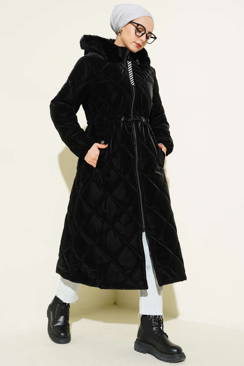 Baklava Kapitone Bel Tünelli Uzun Mont Siyah