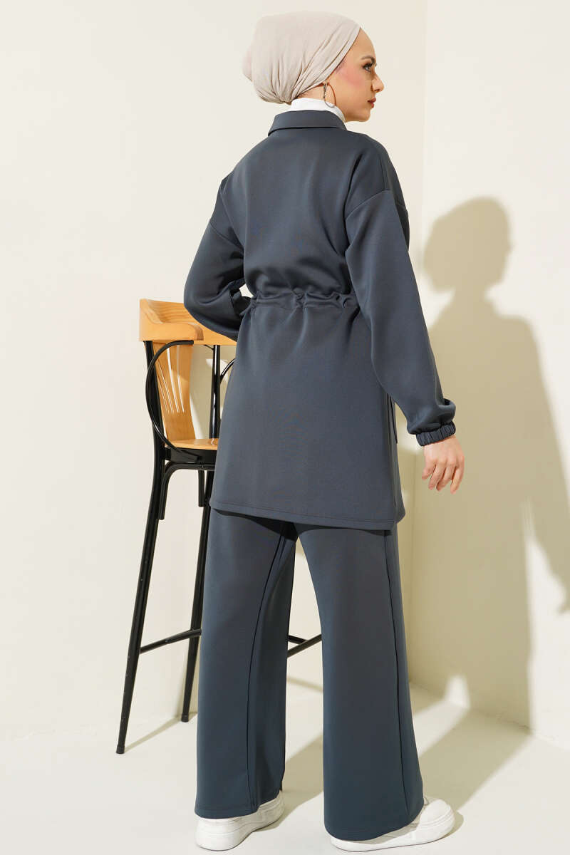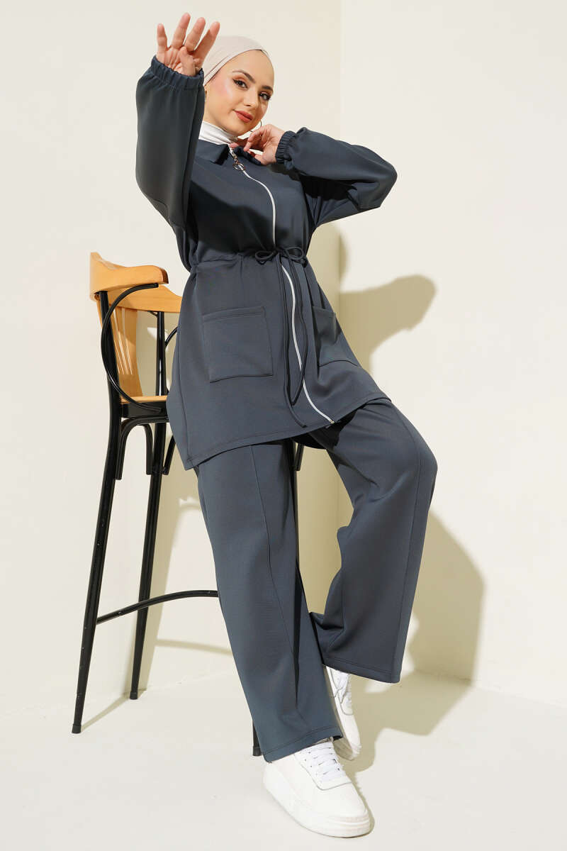 Yaka Kürklü Fermuarlı Triko İkili Takım Lacivert
