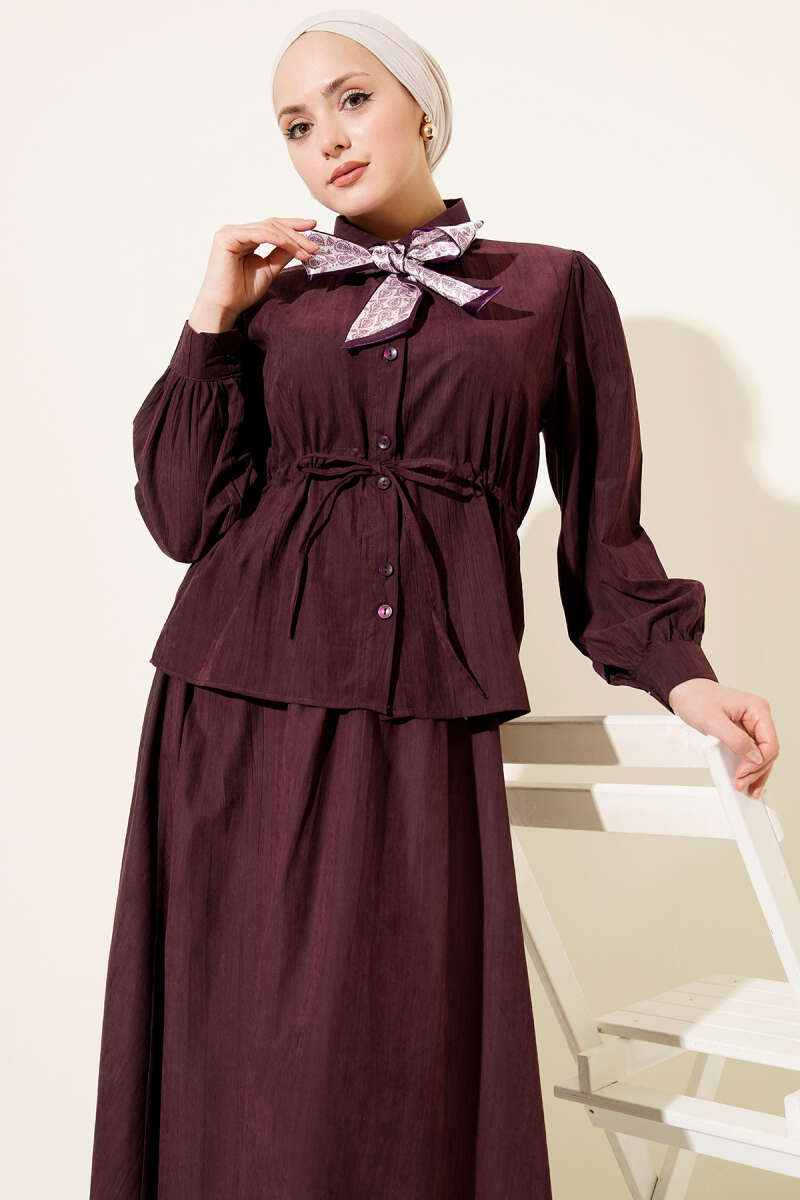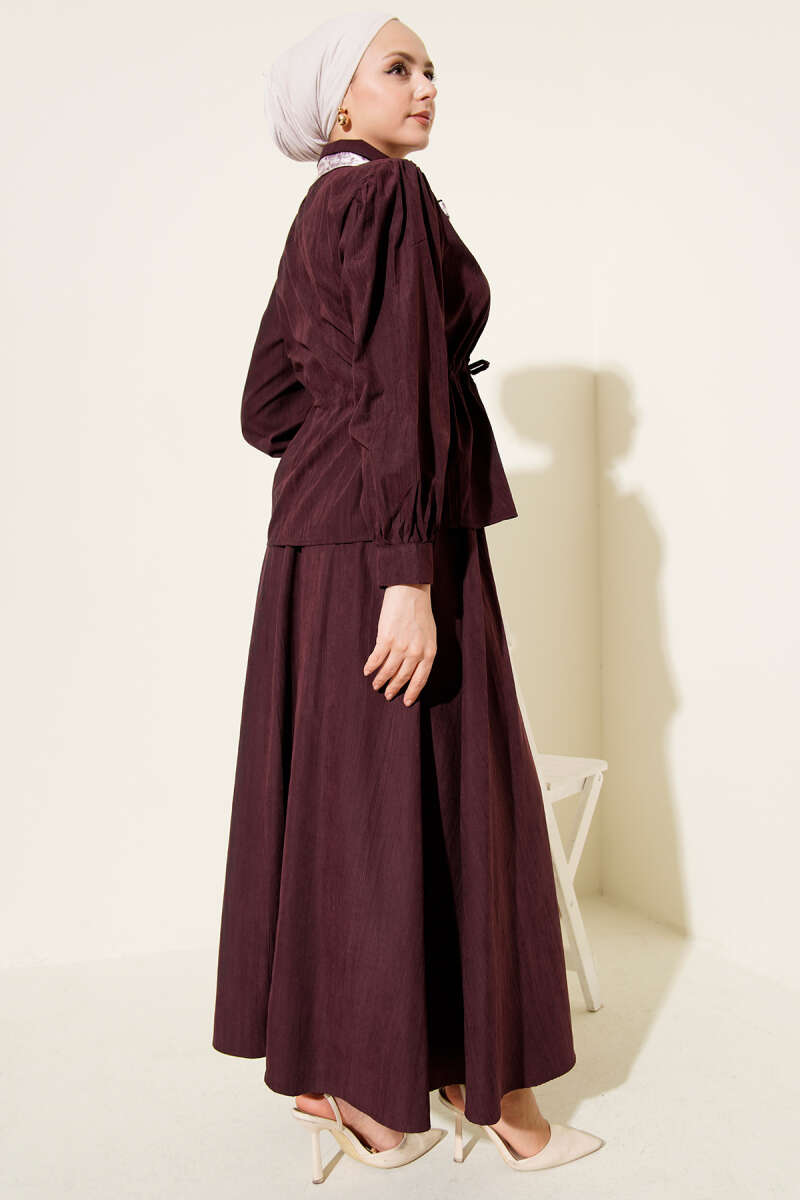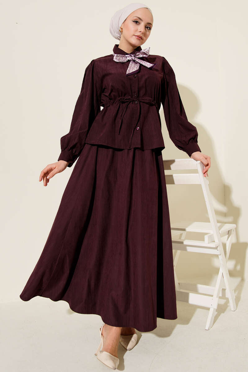 Bel Tünelli Fularlı Tensel Etekli Takım Burgonya