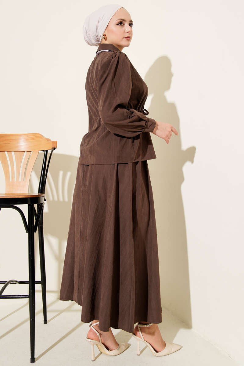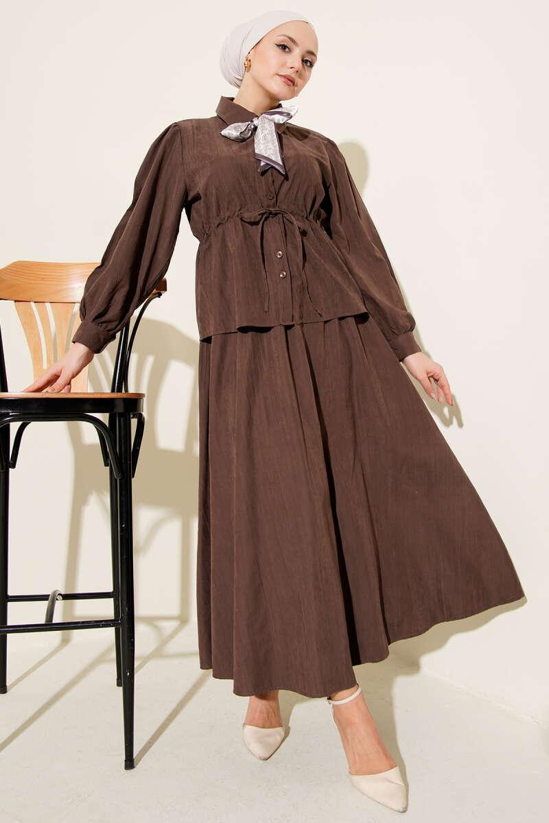 Bel Tünelli Fularlı Tensel Etekli Takım Kahve