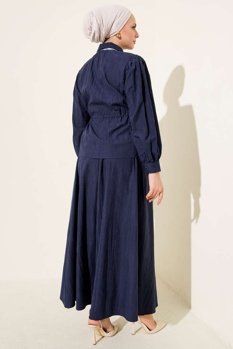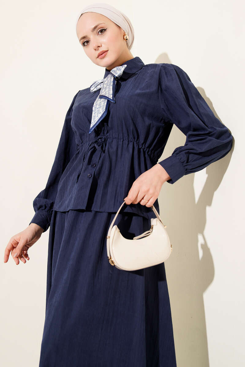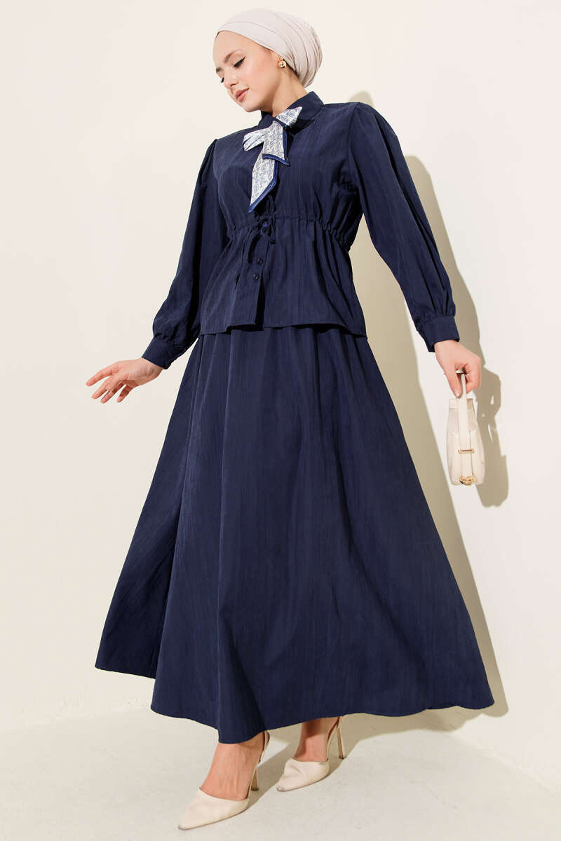 Bel Tünelli Fularlı Tensel Etekli Takım Lacivert