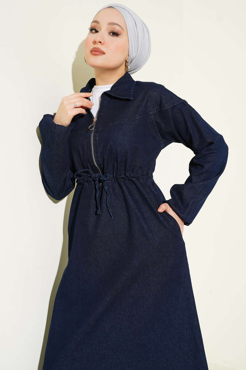 Bel Tünelli Gömlek Yaka Kot Elbise Açık Mavi