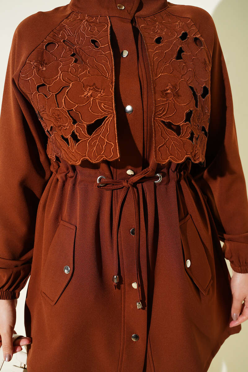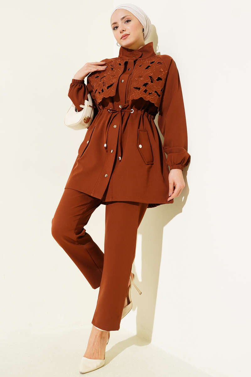 Bel Tünelli Güpür Parçalı İkili Takım Bej