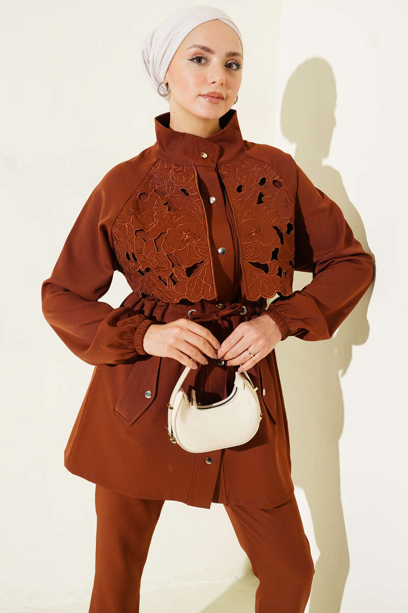 Bel Tünelli Güpür Parçalı İkili Takım Bordo