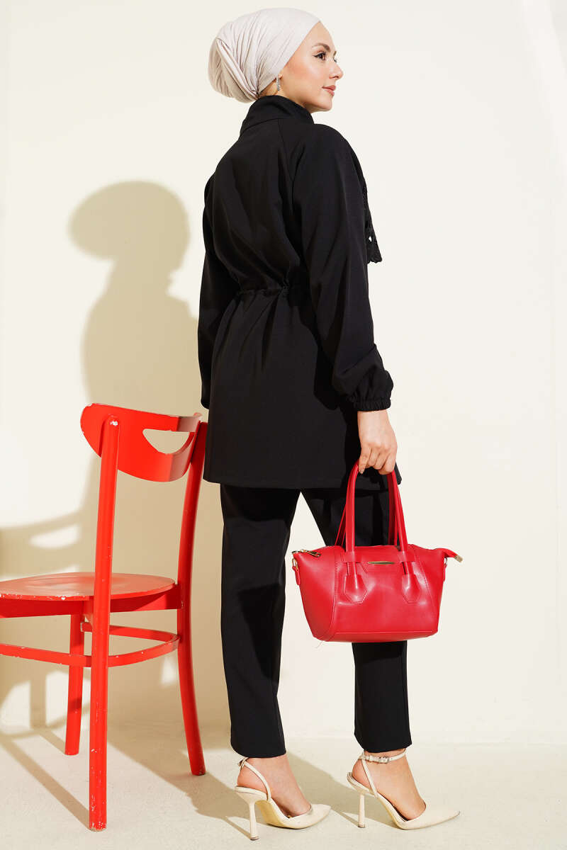Düğmeli Fırfırlı Etekli İkili Takım Siyah