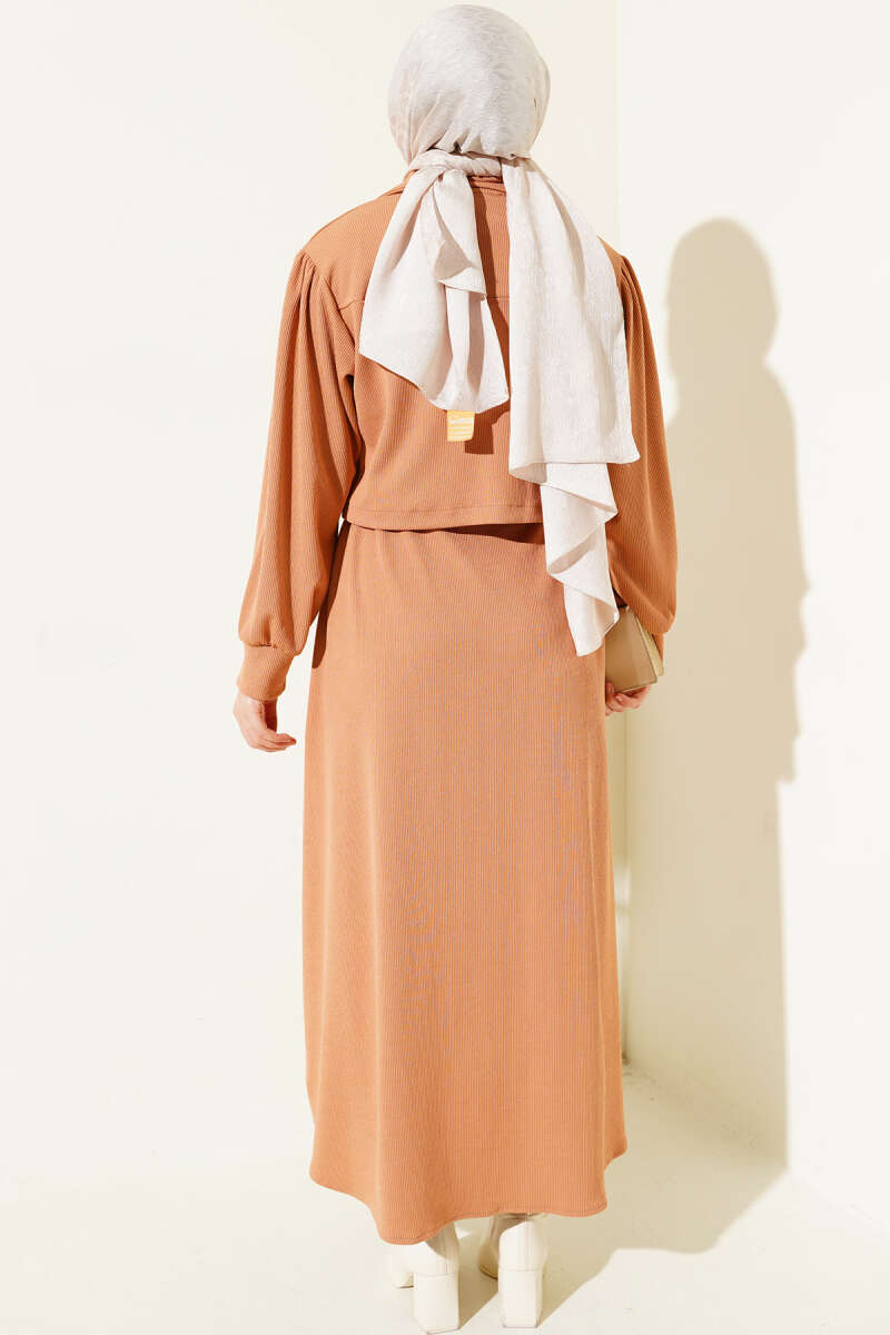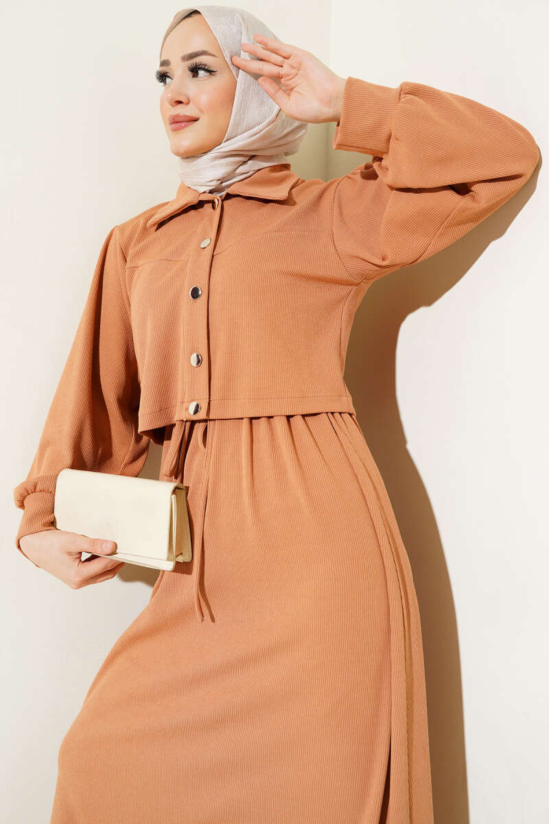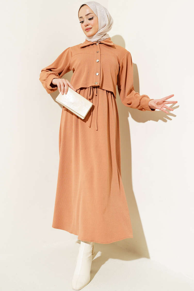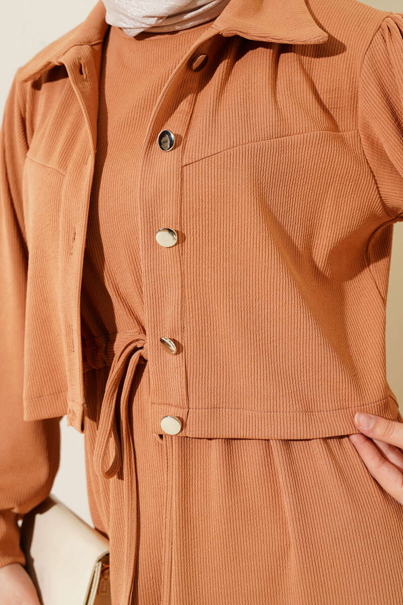 Bebe Yaka Düğmeli Etekli İkili Takım Bej