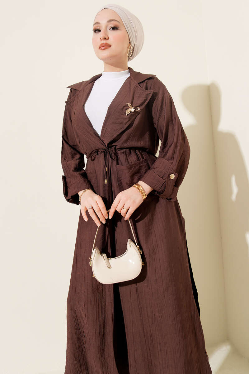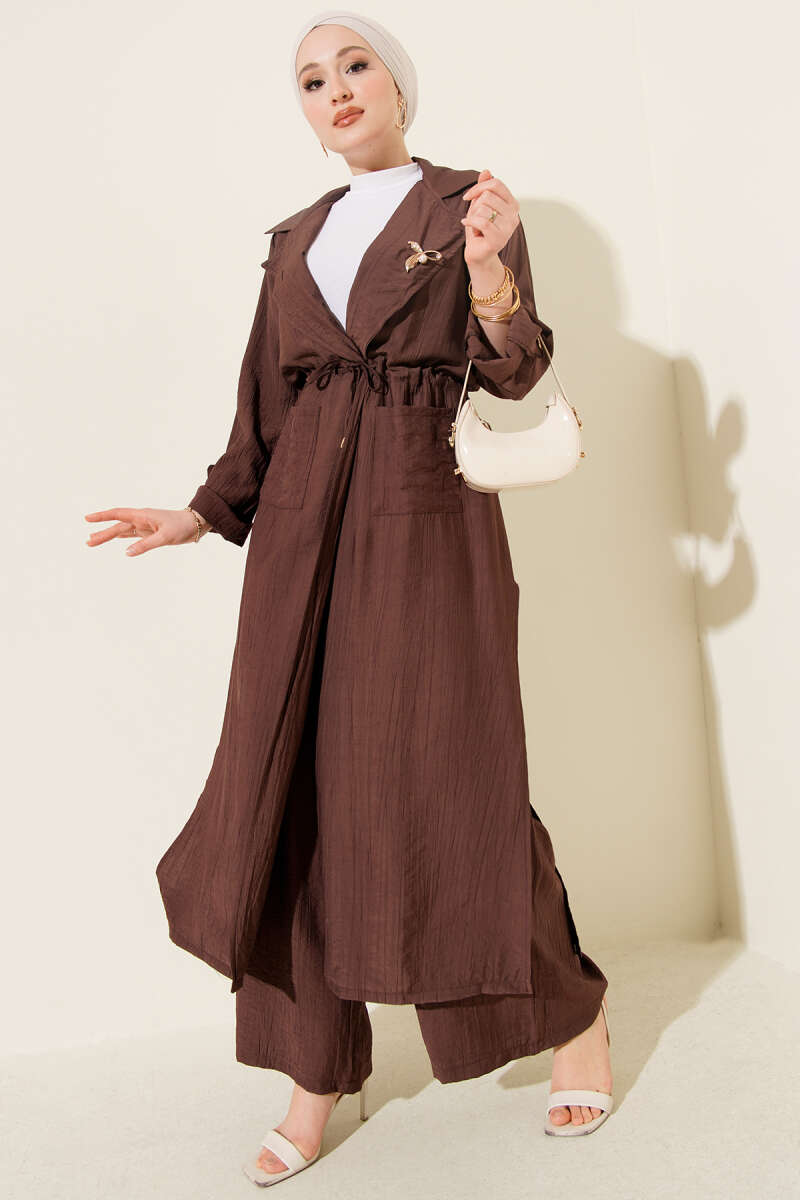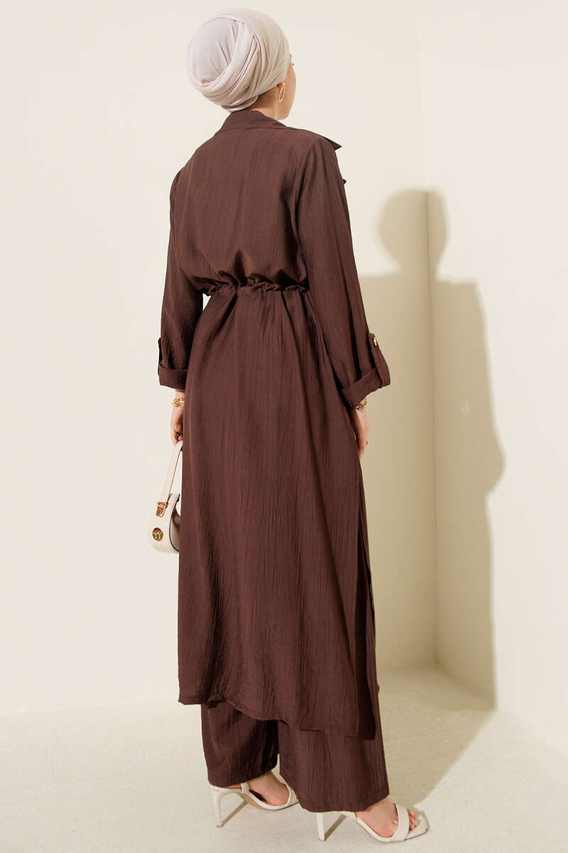 Denizci Yaka Dantelli Tunik İkili Takım Kahve