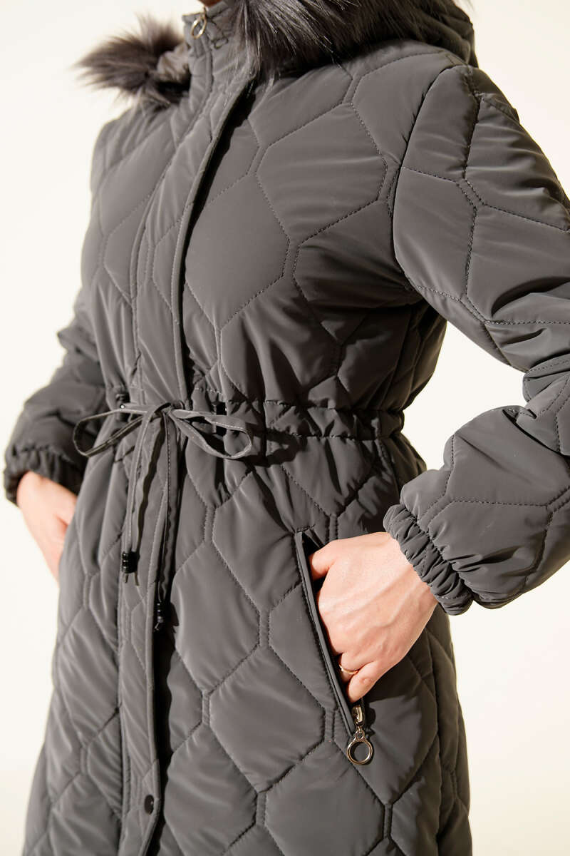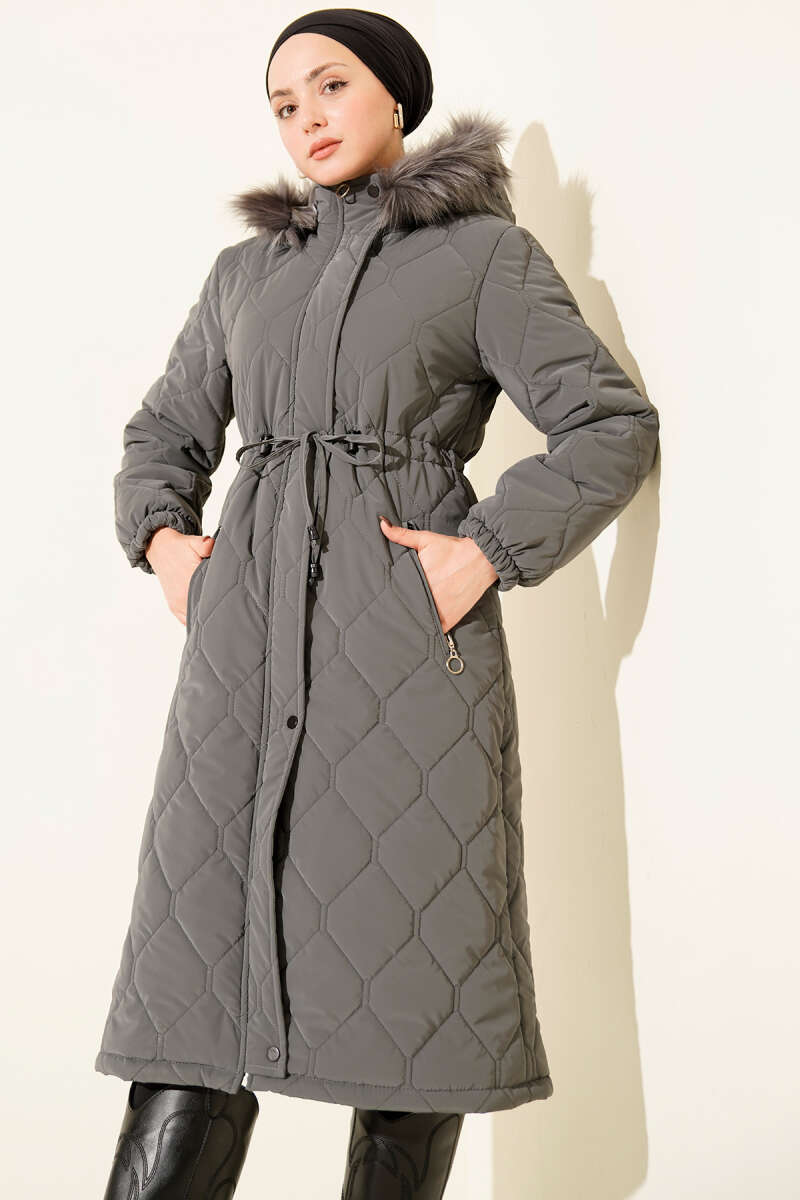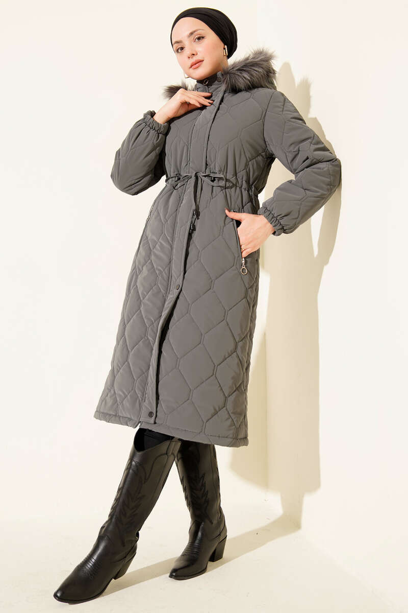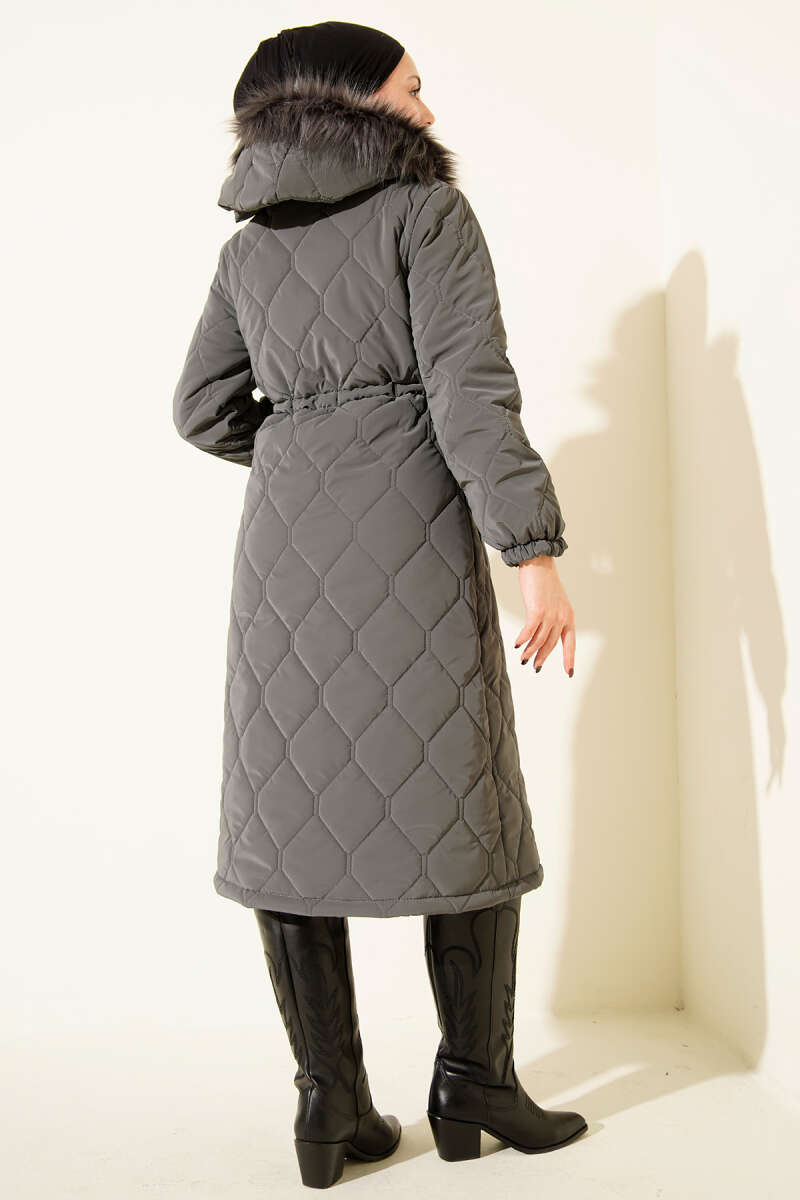Bel Tünelli Kapüşonlu Kapitone Şişme Mont Füme