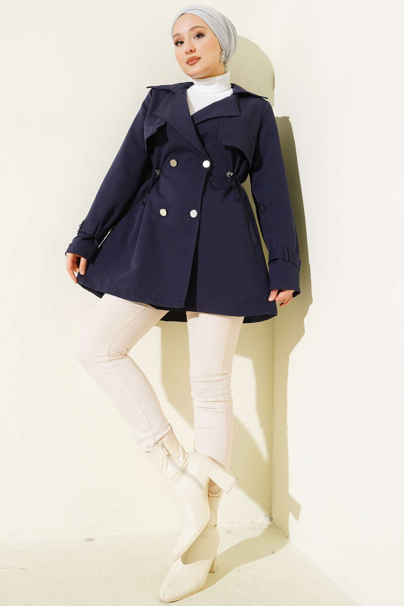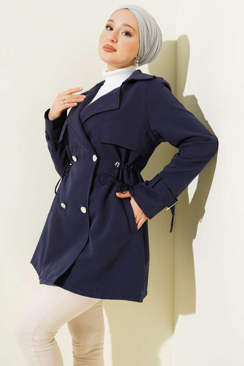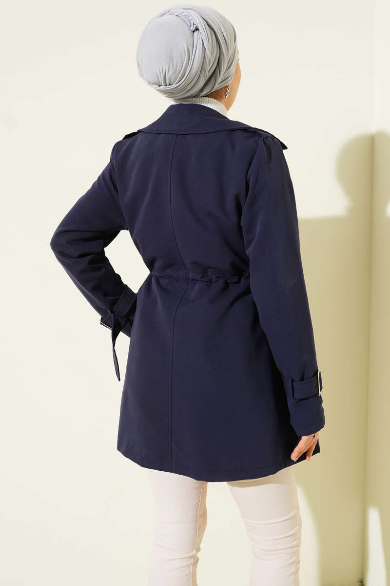 Omuz Apoletli Kuşaklı Trençkot Lacivert