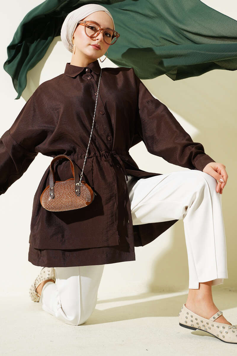 Bel Tünelli Oversize Odesa Gömlek Kahve