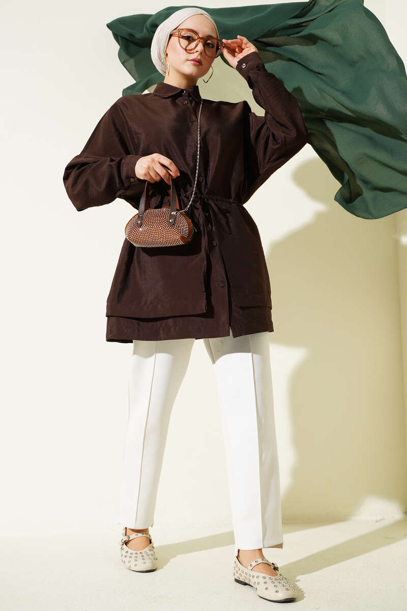 Bel Tünelli Oversize Odesa Gömlek Kahve