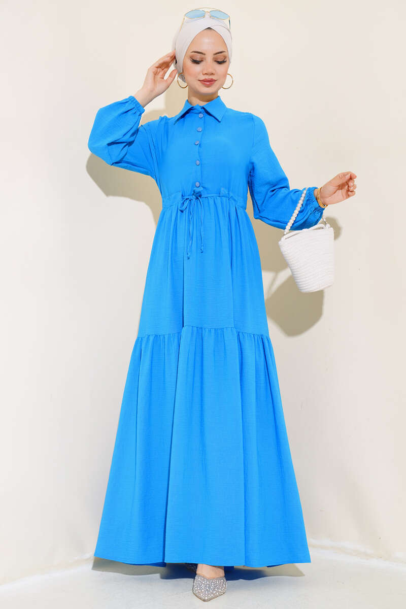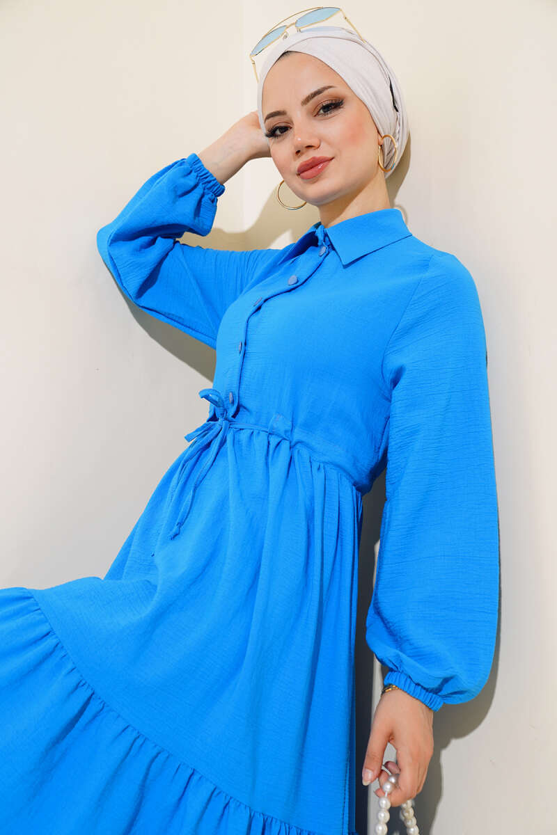 Gömlek Yaka Düğmeli Triko Elbise Nefti