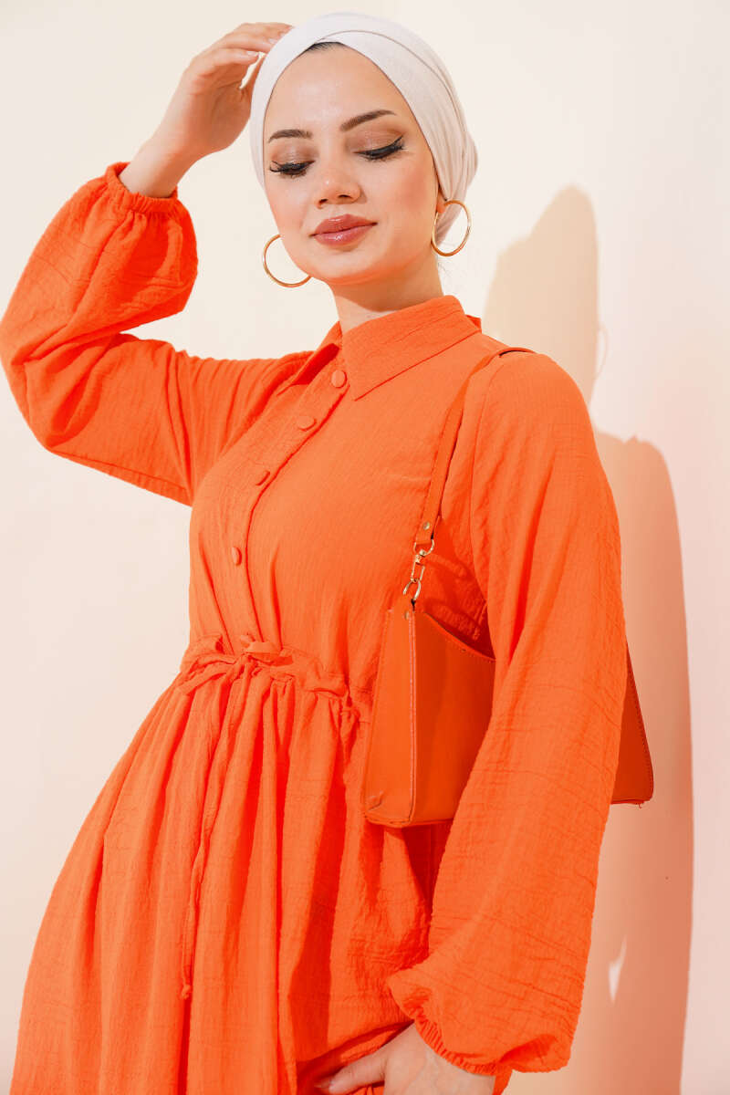 Gömlek Yaka Düğmeli Triko Elbise Nefti