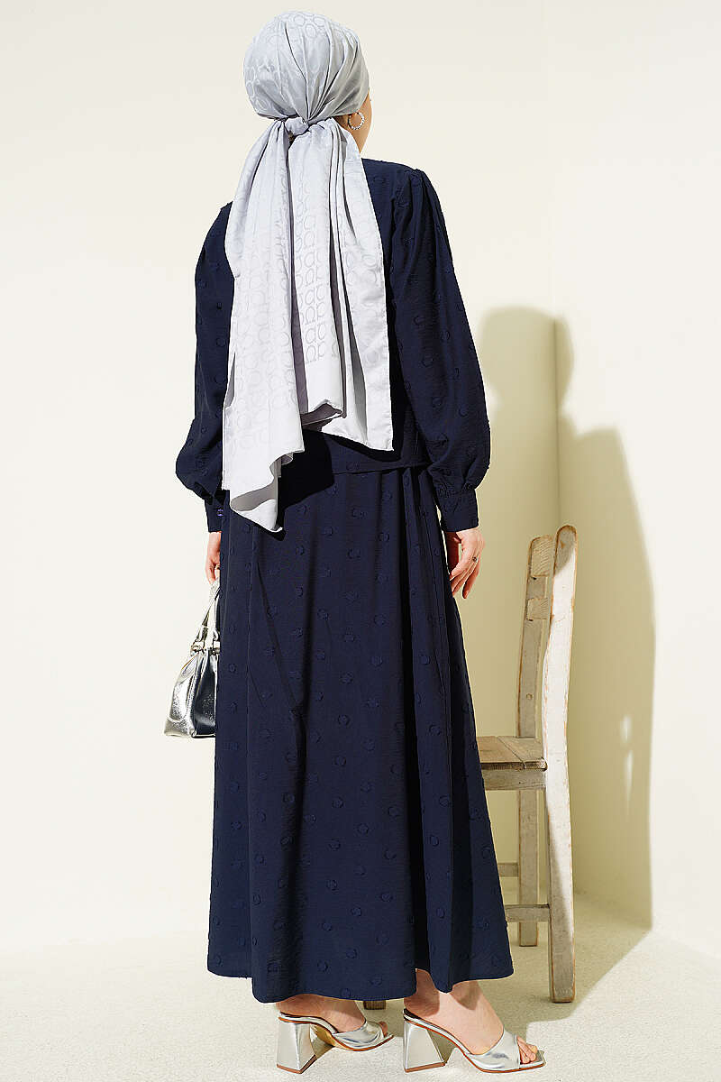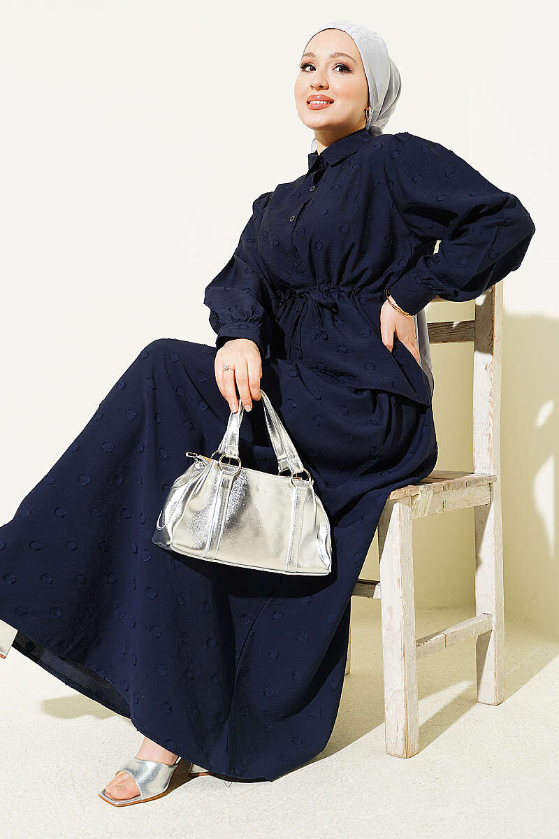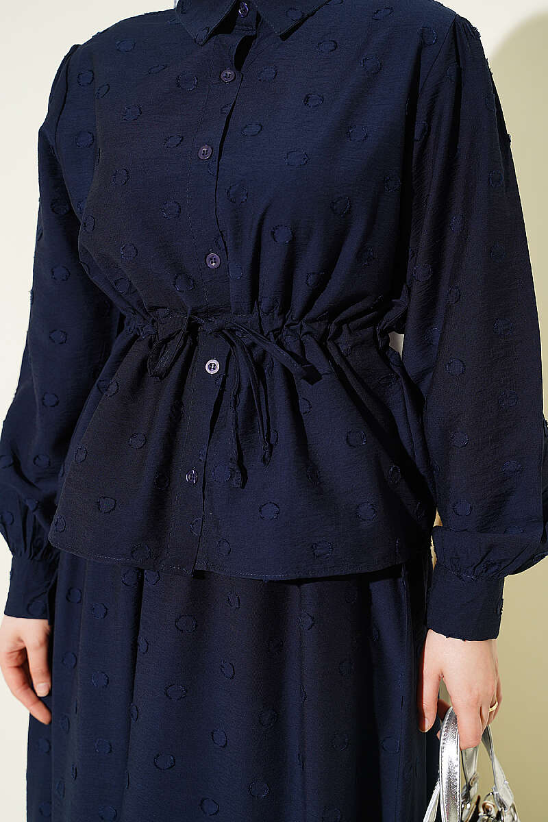Bel Tünelli Puantiyeli Etekli İkili Takım Lacivert