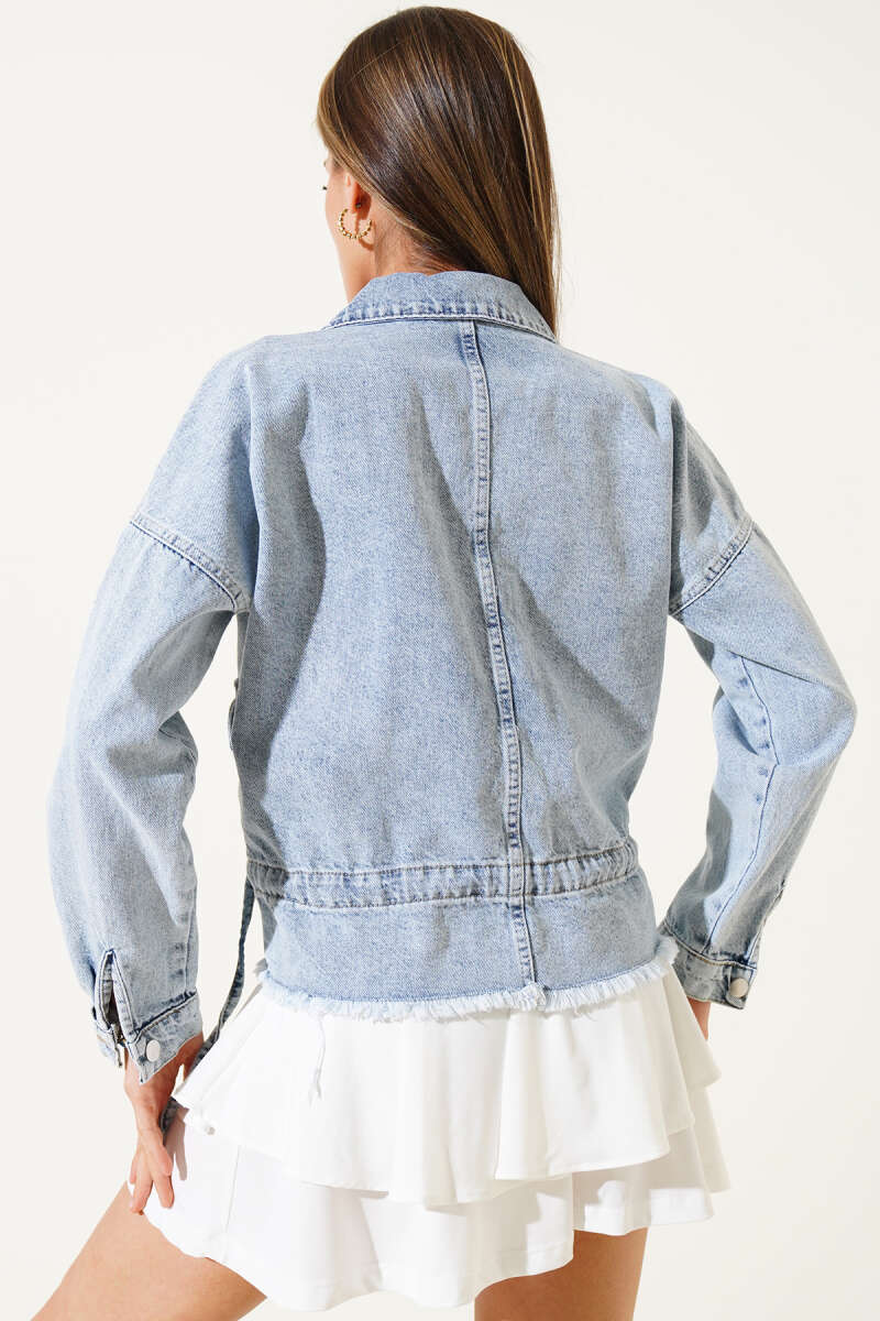 Baklava Nakışlı Taşlı Kot Ceket Mavi